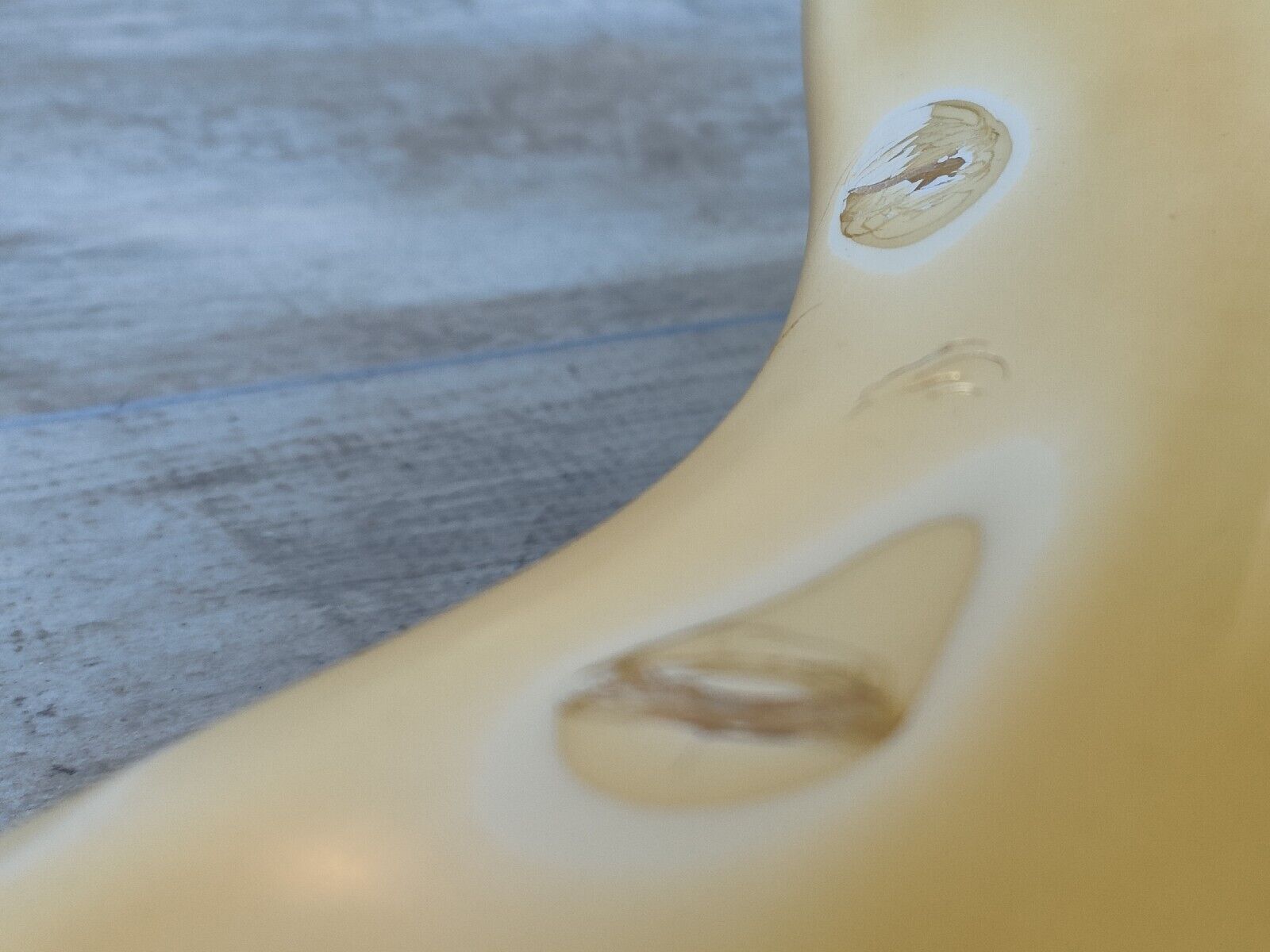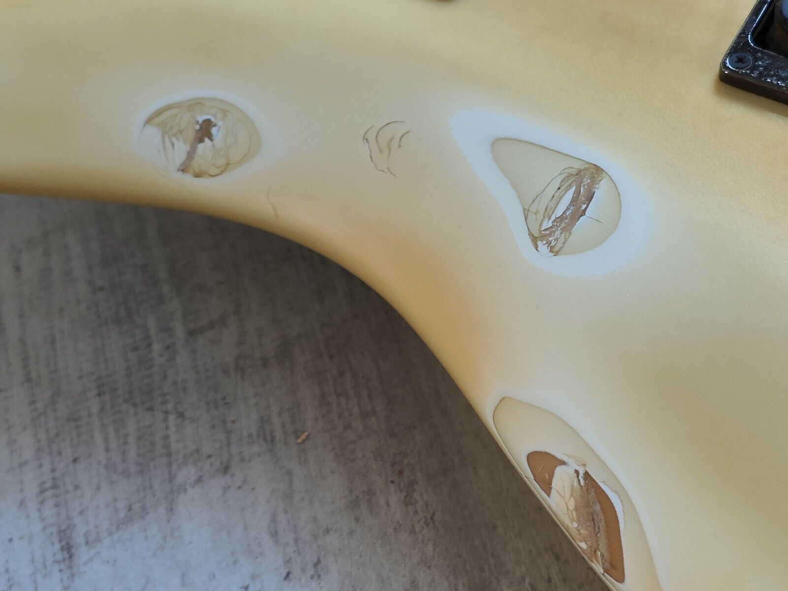 Good overall used condition as pictured, given a basic setup and service prior to listing, frets have plenty of play-wear from the previous shredder but still have life in them and are shiny, the neck is straight and the truss works as it should. Has three cosmetic bumps on the top contour as pictured, all are smooth to touch and are purely cosmetic.