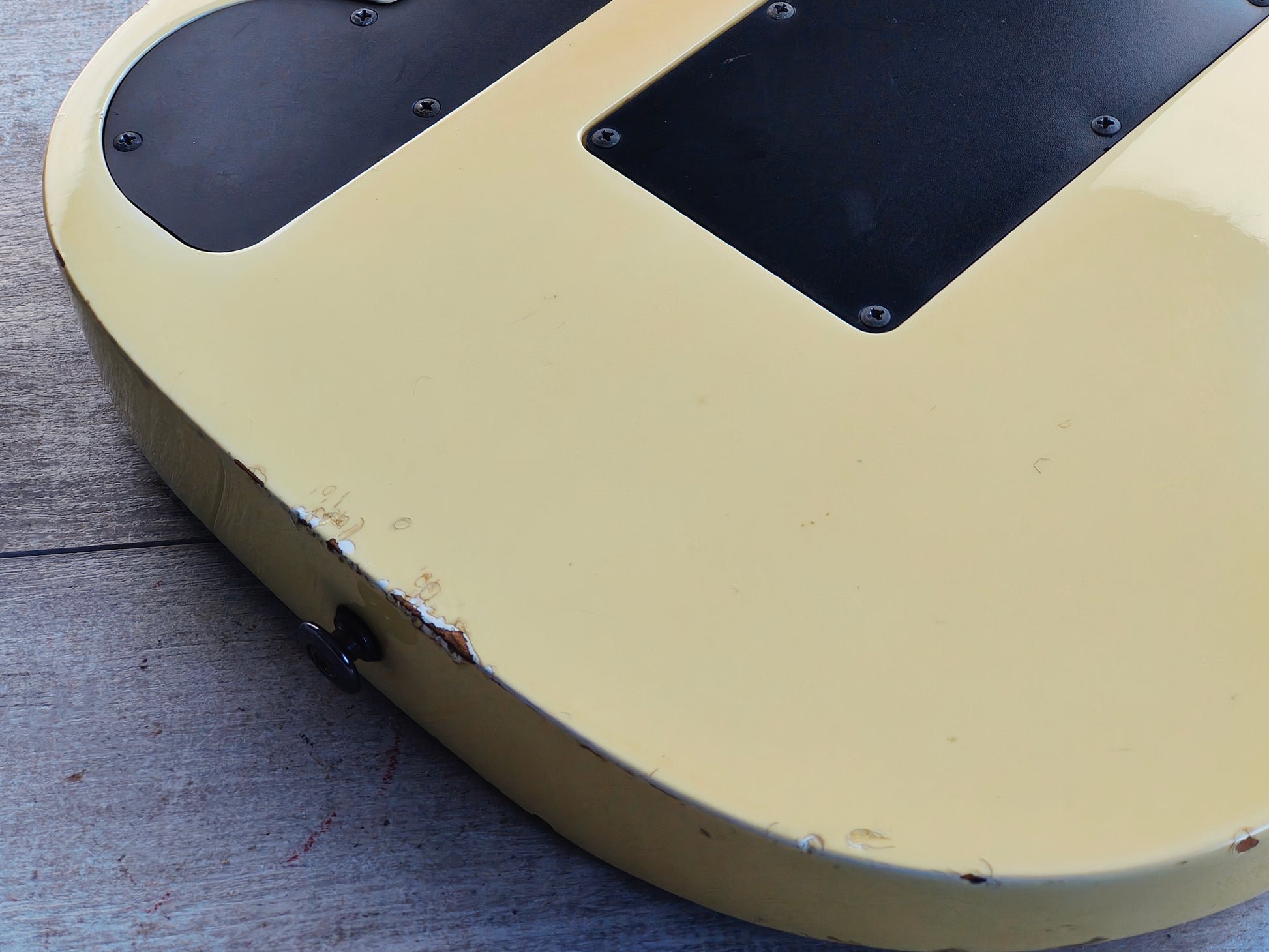 Paul Gilbert's longest running signature model, the PGM300 was made by the Fujigen factory from 1991 until 2004. This is a 1992 build with the classic aged white finish on a solid basswood body bolted to a Wizard profile maple neck with a 24 fret fingerboard (jumbo nickel frets, 44mm nut width, 648mm scale length), weighs 3.5kg's.