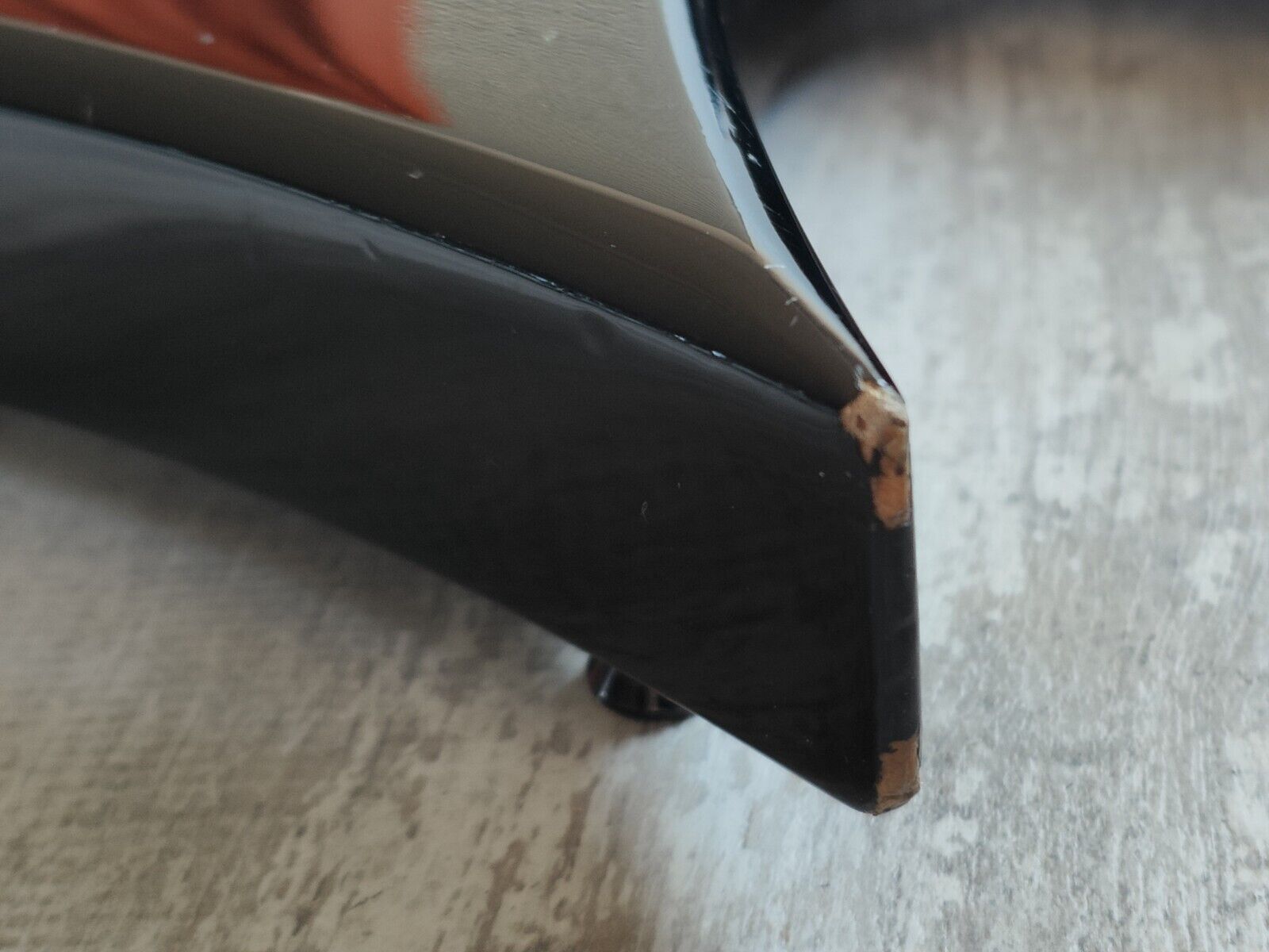 A Japanese made NJ Series Warlock from the domestic market in the early 1990's (dated using the pot codes as the serial sticker has been removed). Maple body bolted to a slim maple neck with a dark slab rosewood fingerboard (24 frets, 628mm scale length), it weighs 3.6kg's. Loaded with a Licensed Floyd Rose tremolo system and the original BC Rich "Super Distortion" style humbuckers controlled by two volume knobs, a tone knob and a three-way pickup selector.