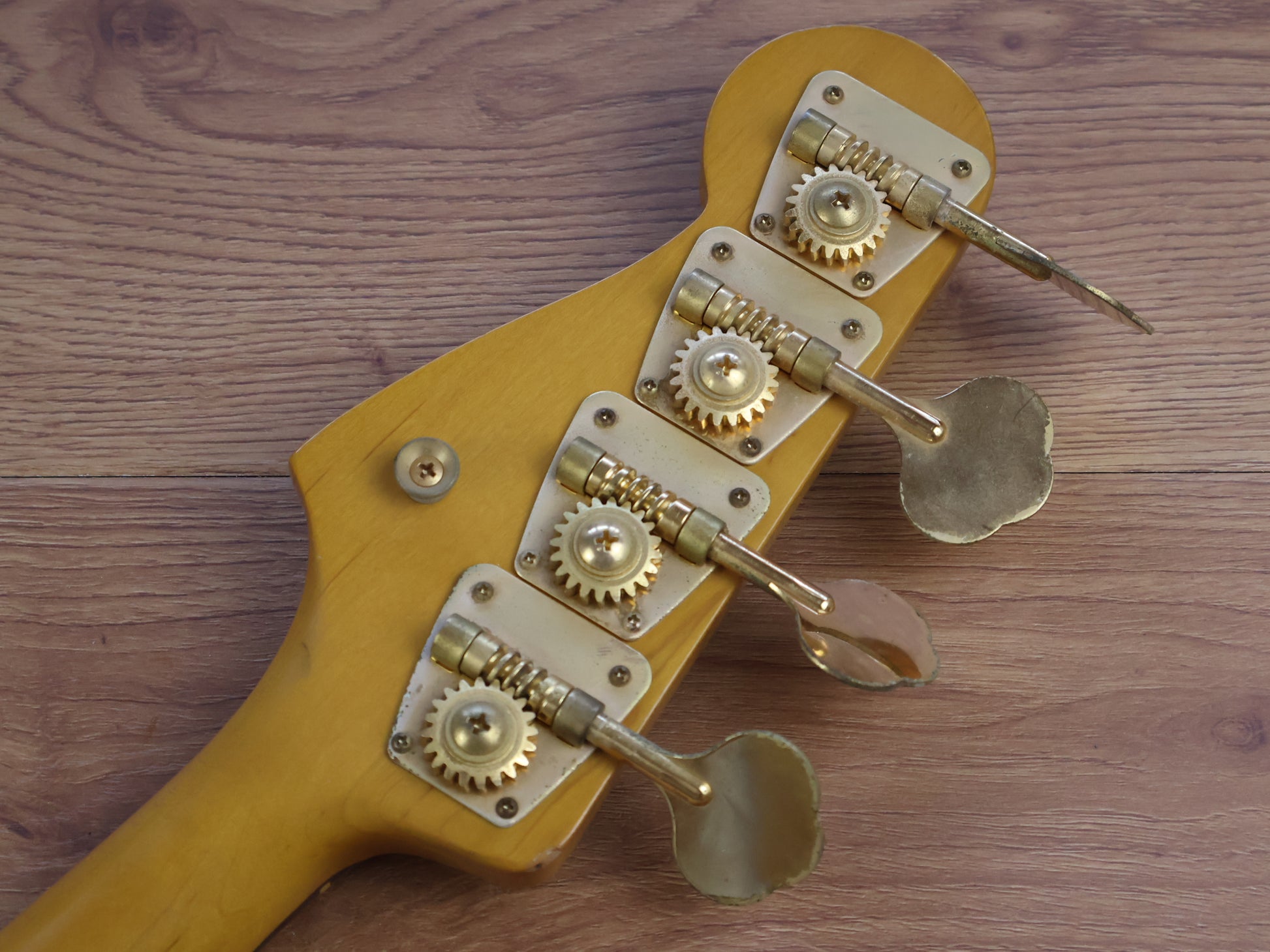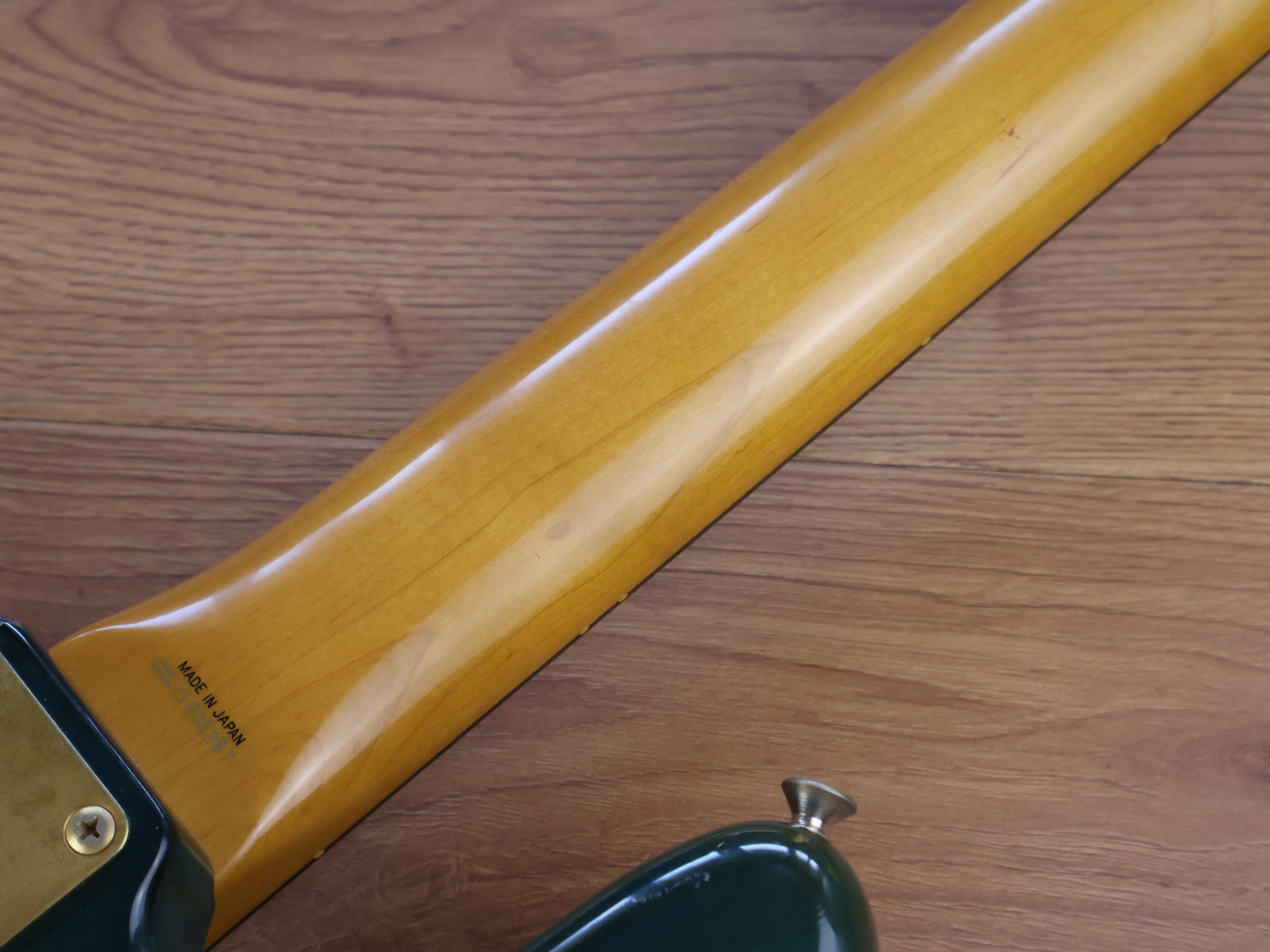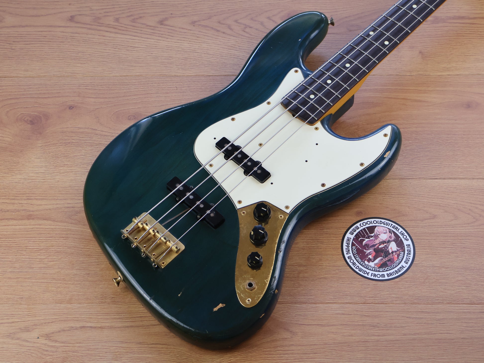 A model that isn't frequently available for sale, this is a Fender Japan JB62G-70 model that was part of Fender's "Custom Edition" catalog alongside gems such as the Bass VI and Esprit. American Basswood body with a transparent blue finish bolted to a '62 profile maple neck with rosewood fingerboard (7.25" radius), it weighs 3.5kg's. Factory loaded with gold hardware and JB-VINTAGE single coils.