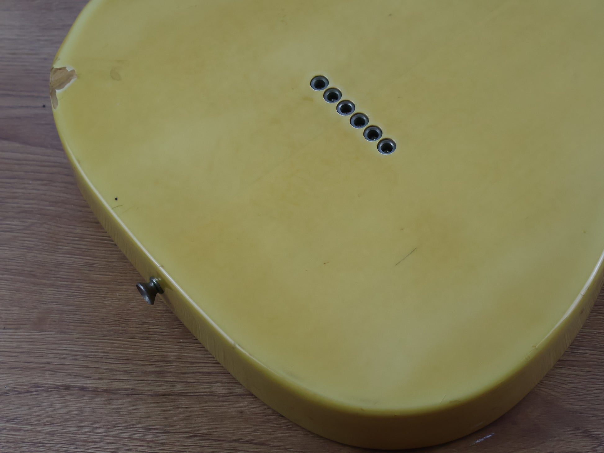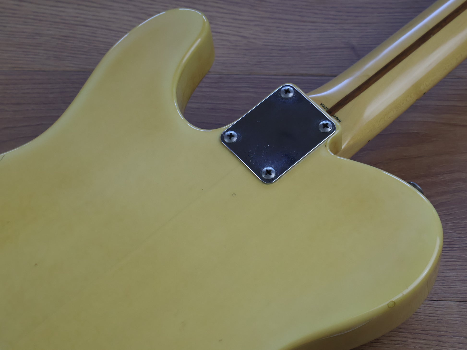 Japanese made in 1993, the TL72-53 was Fenders '72 Reissue Telecaster. Off White Blonde finish on an ash body bolted to a slim C profile maple neck (42mm nut width, 7.25" radius), it weighs 3.5kg's. Loaded with Fender Japan TL-CURRENT pickups, an aftermarket 6-point ashtray style bridge and Gotoh tuners.