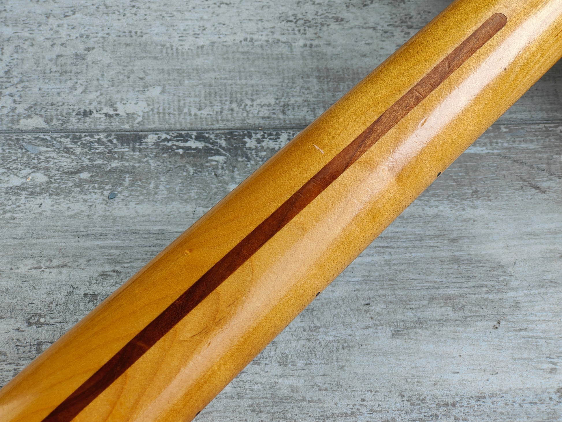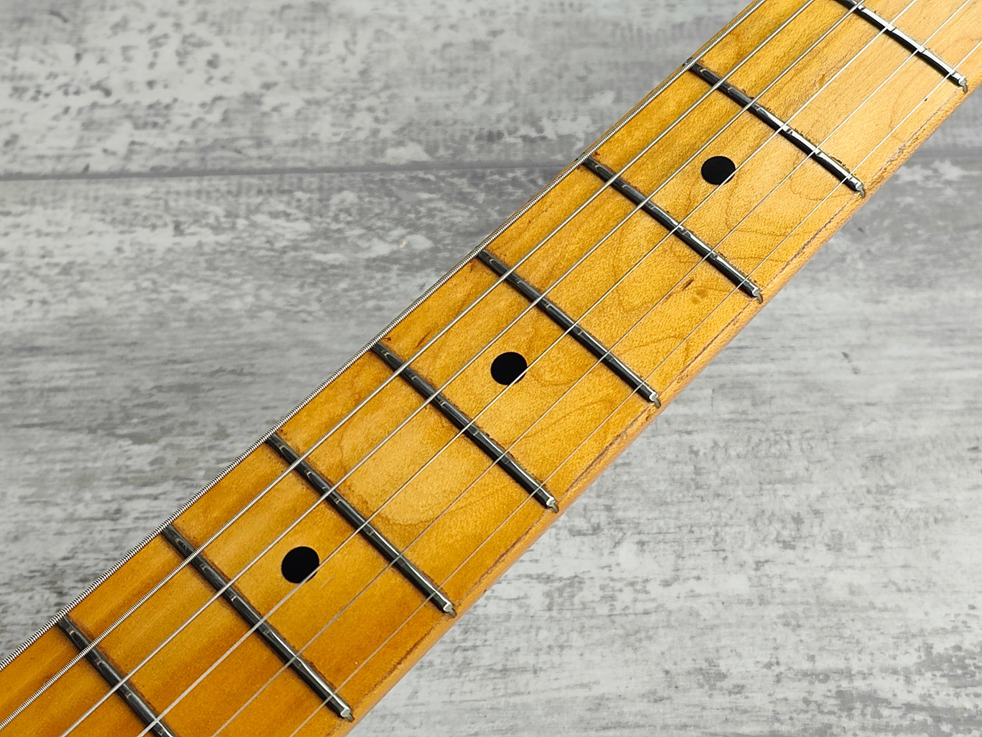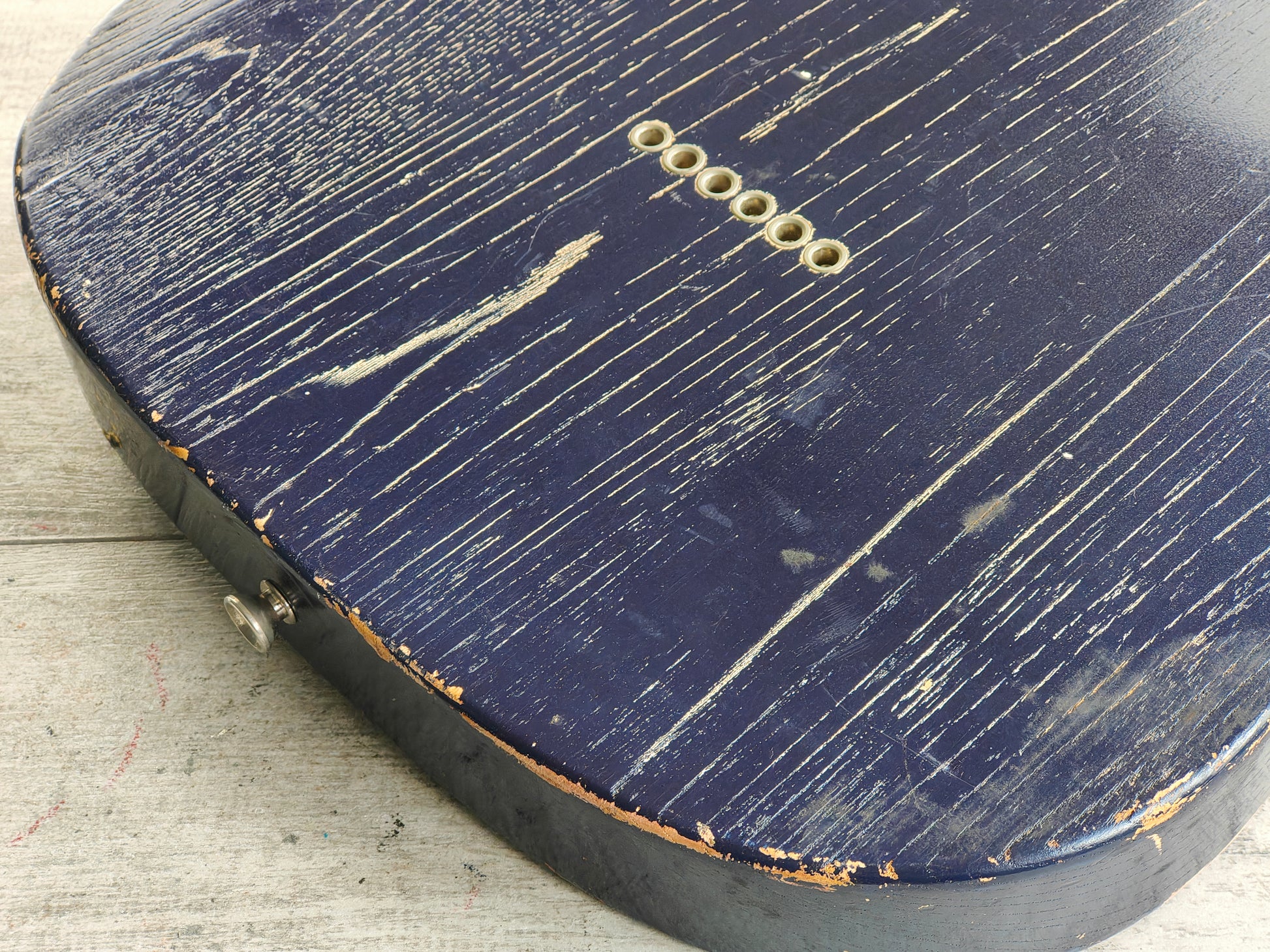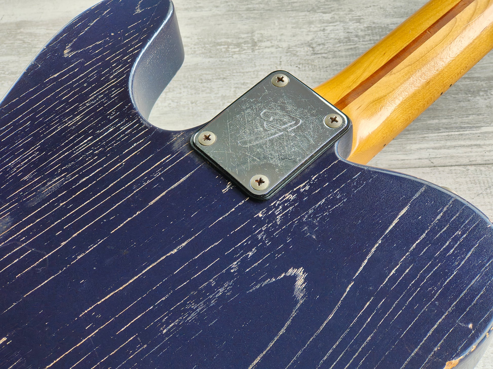 Made by the Fujigen factory in 1993, the TL72 was a reissue of the regular '72 model Telecaster (rather than the more famous Thinline or Custom models from that era). This one wears an aftermarket satin purple stain finish on the sen ash body with some beautiful grain showing through. Oval profile one-piece maple neck (7.25" radius, 21 frets), it weighs 3.6kg's.