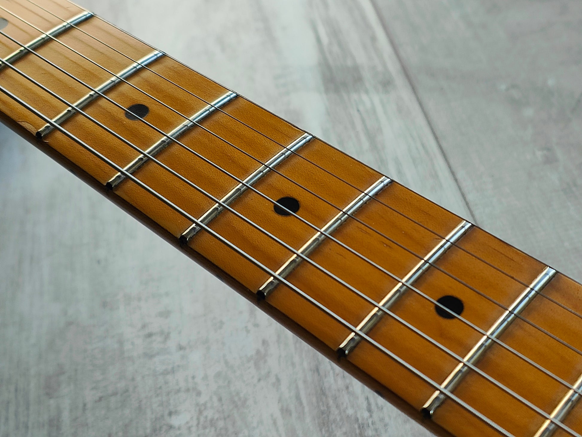 Received a full professional setup and service prior to listing including a fret polish, electronics flush and truss adjustment, the frets have some light pitting but still have plenty of life left and the truss works as it should.