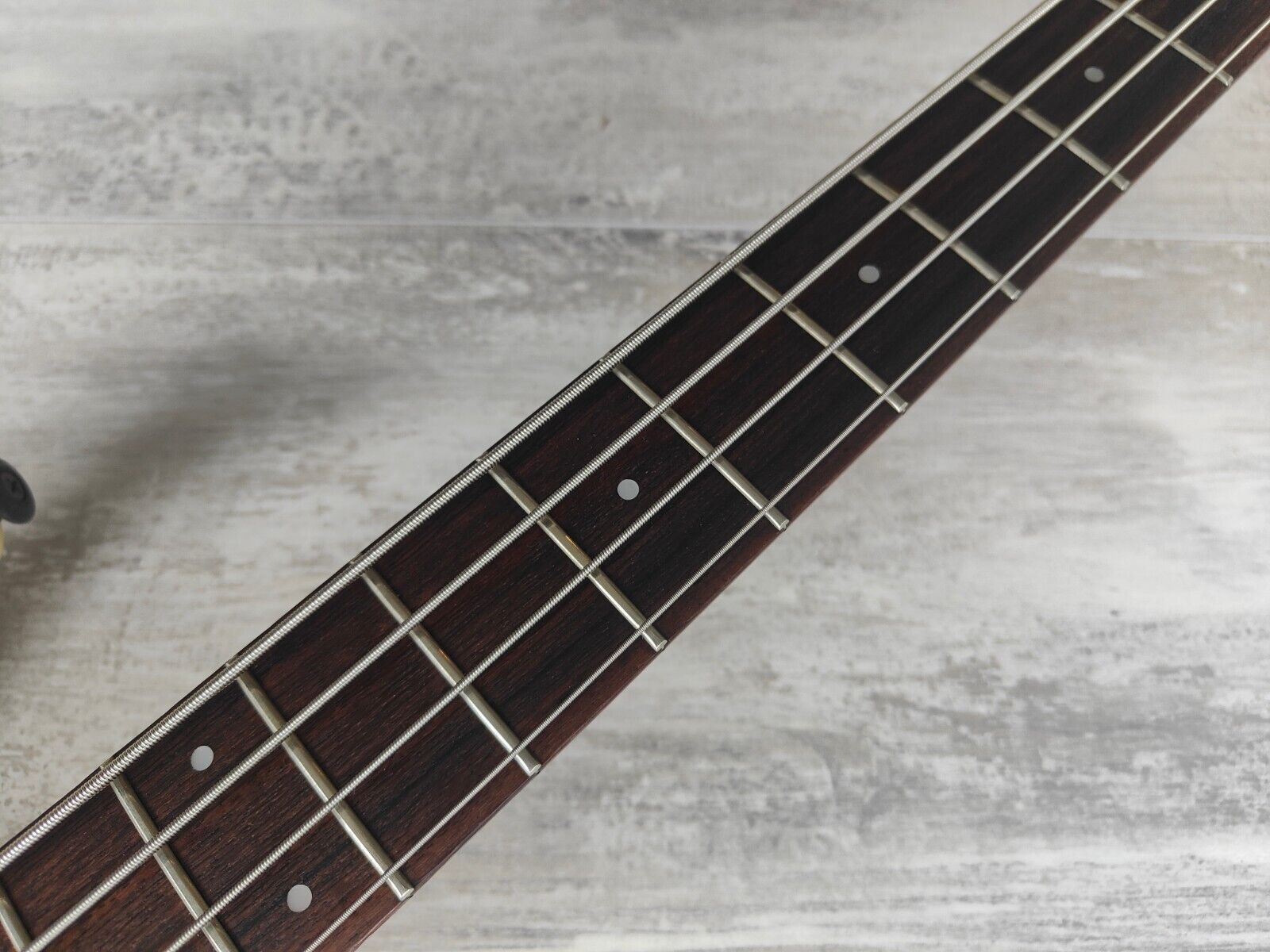 Japanese made in the mid 1990's, the SR-600 was a modern compact bass with a contoured maple body, maple neck and 24 fret rosewood fingerboard, it weighs 3.1kg's. Loaded with a passive PJ pickup loadout controlled by master volume/tone knobs and a pickup selector knob.