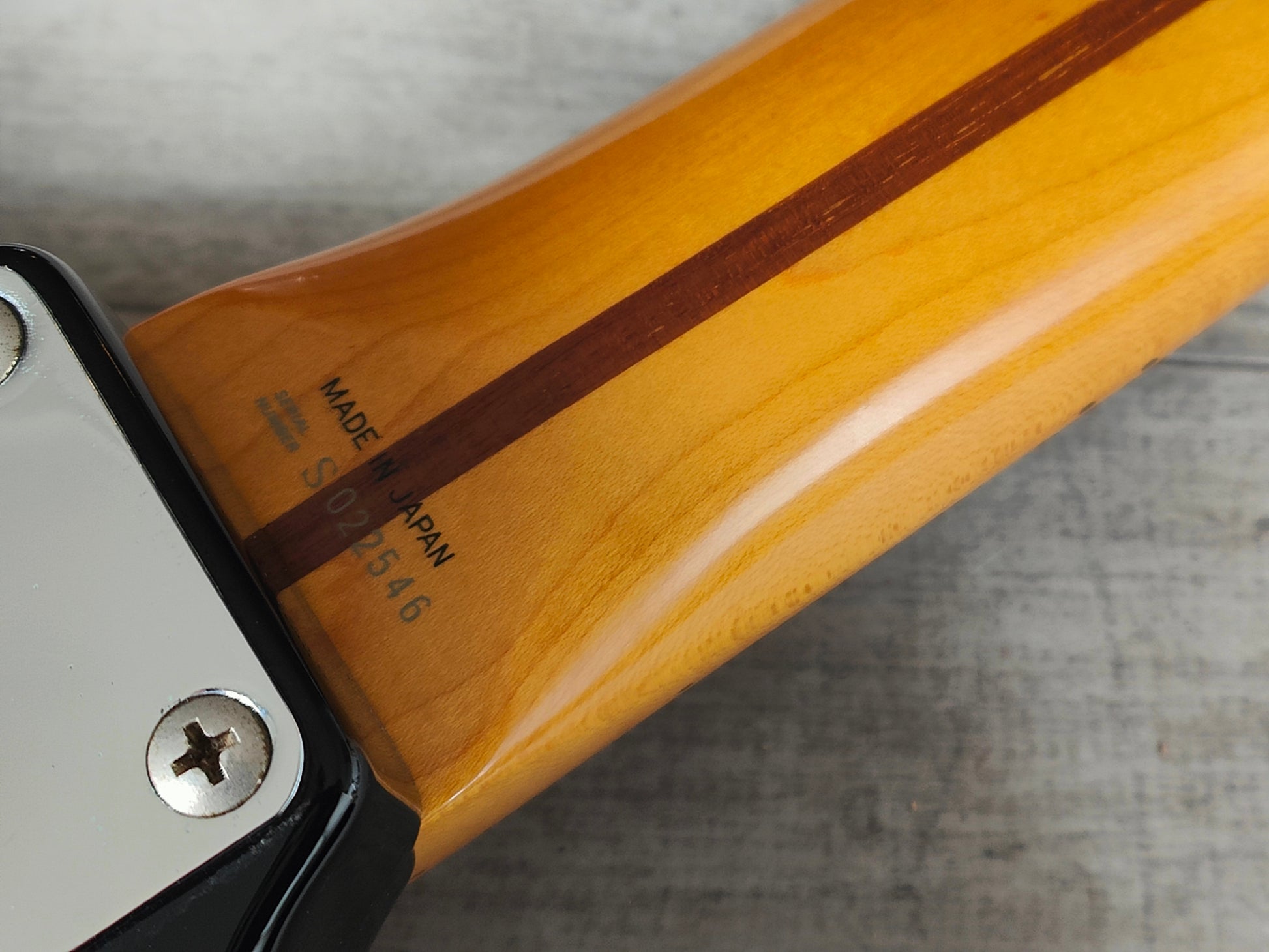 Made by the Fujigen factory in 1994, the ST57-53 was Fender Japan's entry level '57 reissue model. Basswood body wearing a timeless sunburst finish bolted to a 21 fret maple neck (7.25" radius), it weighs 3.3kg's.