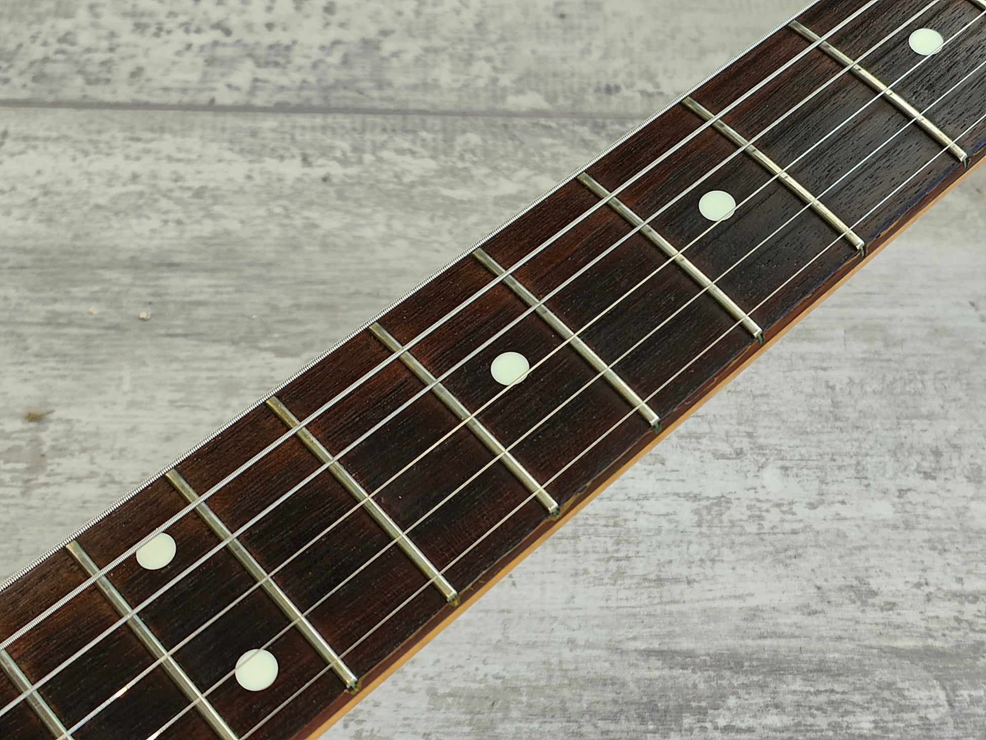Very overall cosmetic condition as pictured with light wear and tear. Given a full professional service prior to listing including a fret polish, truss adjustment, electronics flush and setup. A small amount of the Fotoflame on the back of the neck was clamped and reglued so it's stable and smooth (common on these models), although it looks bad it's actually almost undetectable in the hand. Frets have some light wear but are polished and play well, the neck is straight.