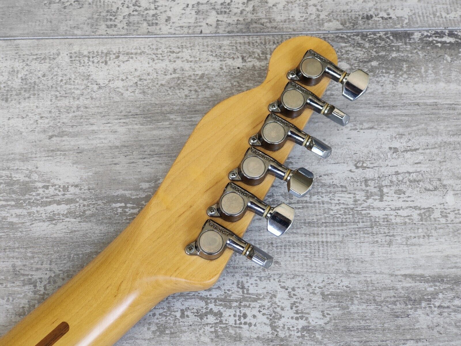 Made by the Fujigen factory in 1994, this Fender TL-STD was the Japanese version of a American Standard. 21 frets on a maple neck with a basswood body that wears a Candy Apple Red finish, it weighs 3.4kg's. Fender Japan pickups with Gotoh tuners and a toploader bridge.