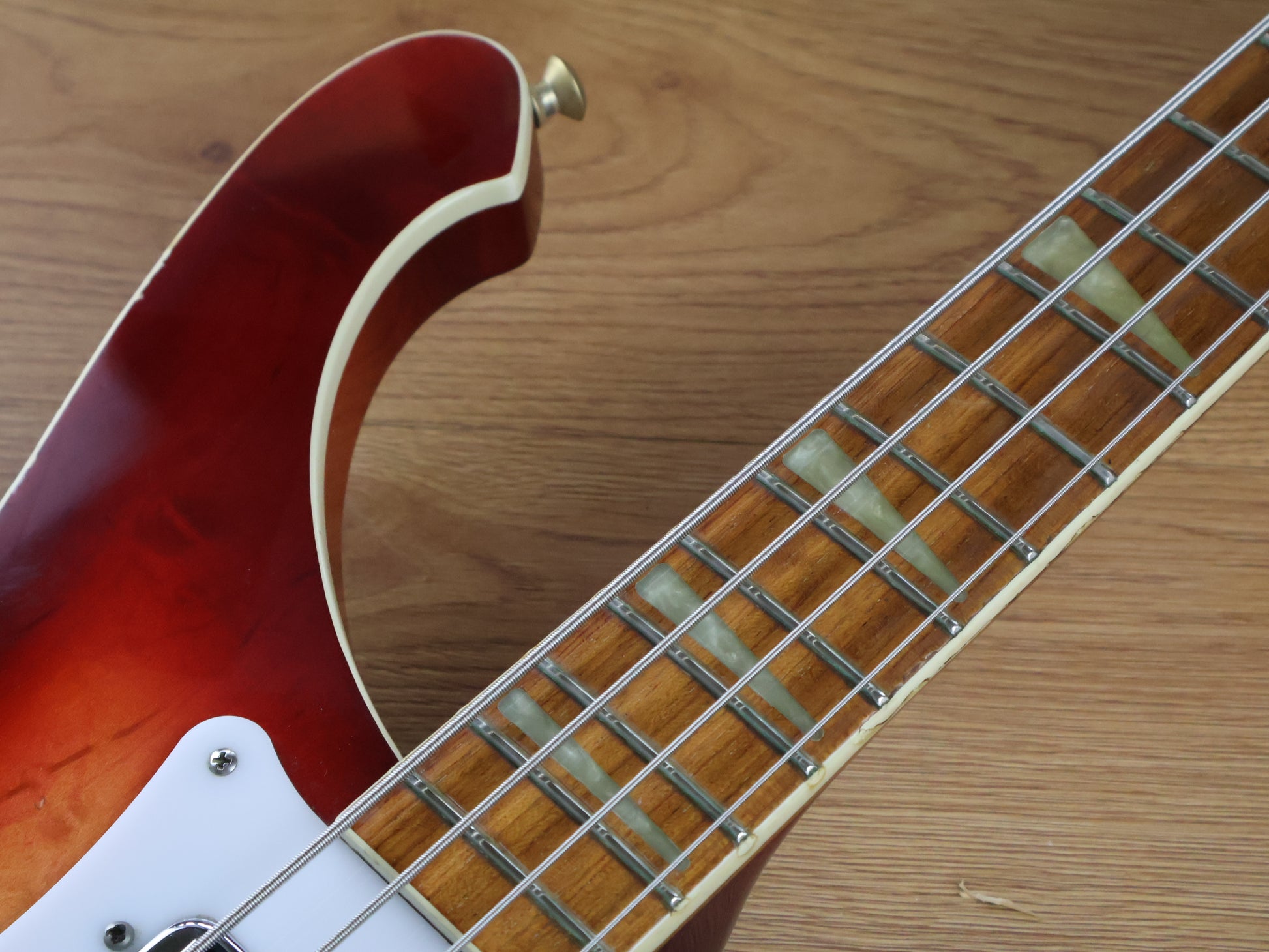 The classic Rickenbacker bass-famous for its ringing sustain, treble punch and solid underlying bass. A subtle strip of binding graces the elegantly curved body and the Rosewood fingerboard. Deluxe triangular fret inlays and stereo capability are standard features.