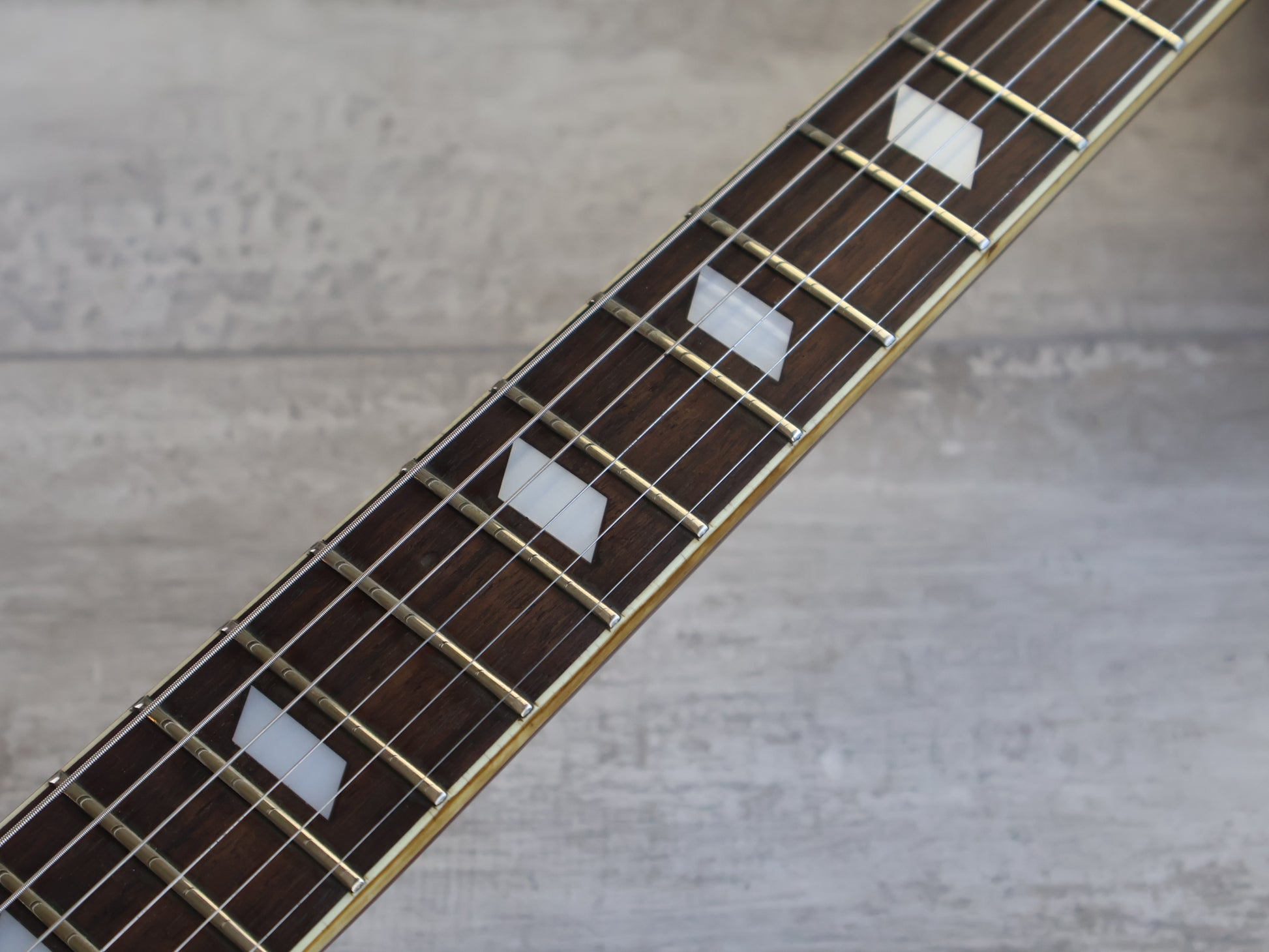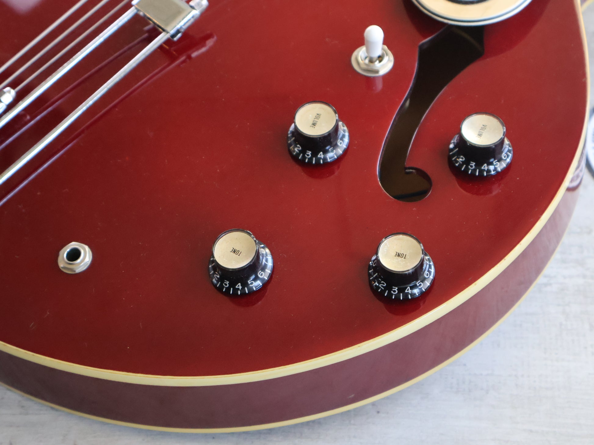 Made by the highly regarded "Peerless" factory in Korea in 1996, the early iteration of the Riviera Reissue was a very high quality reproduction of a Gibson classic. Good used condition as pictured and includes the original case, the pots and switch have been replaced along with a brand new nut so it's ready to go as it sits. Weighs 3.5kg's.