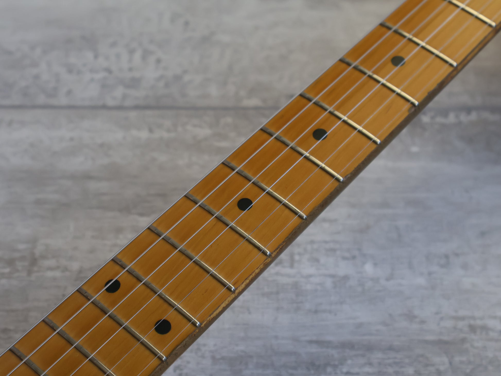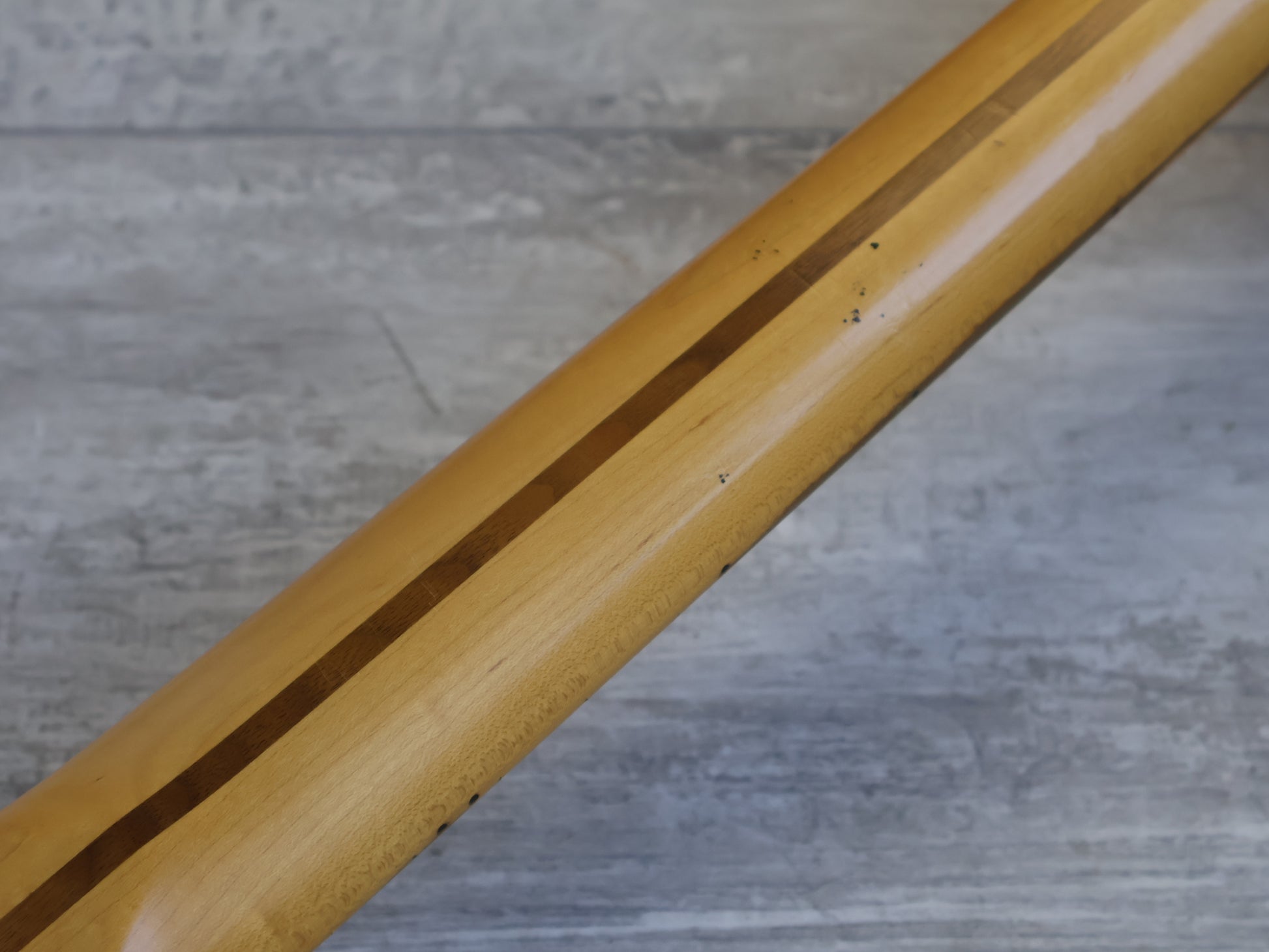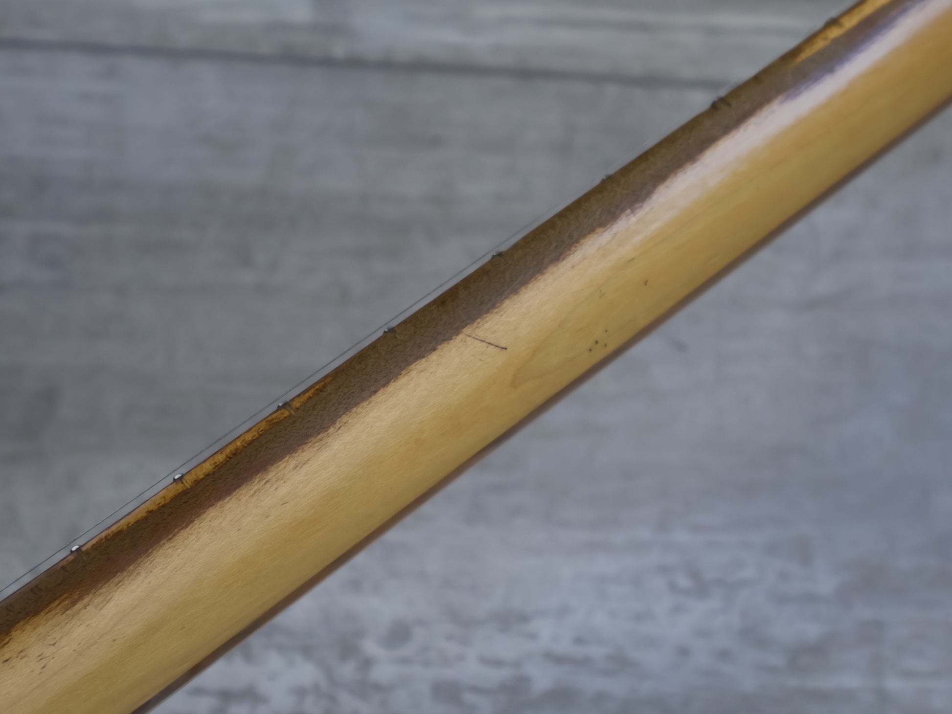 Appears to be all original, it's in good used condition with light wear from general use. Professionally serviced prior to listing, the neck is straight with a fully functional truss and the frets worn with some pitting but still shiny and smooth with life left. The fret edges have been rolled nicely to give a super smooth feel (hence the cosmetic discoloration).