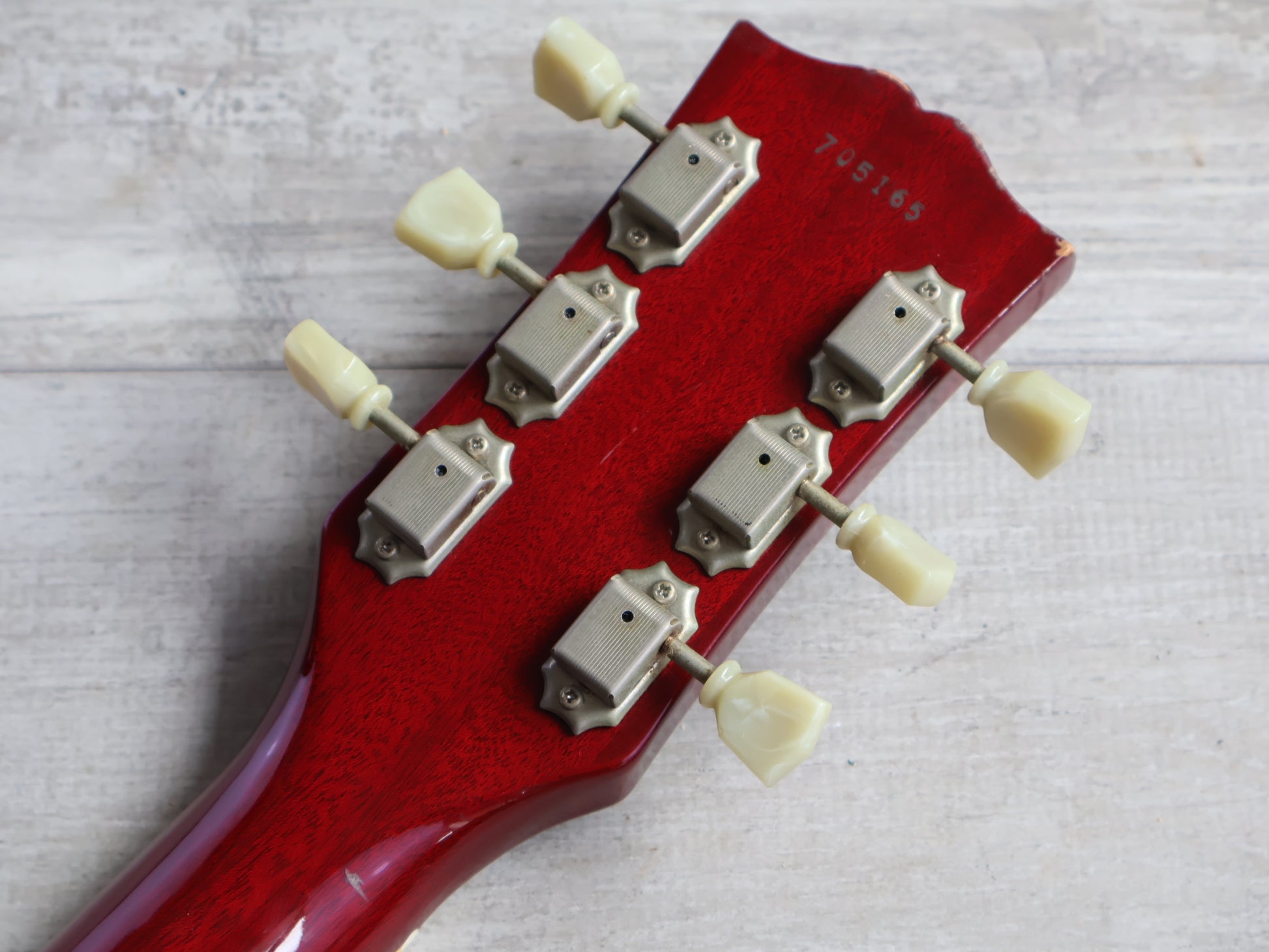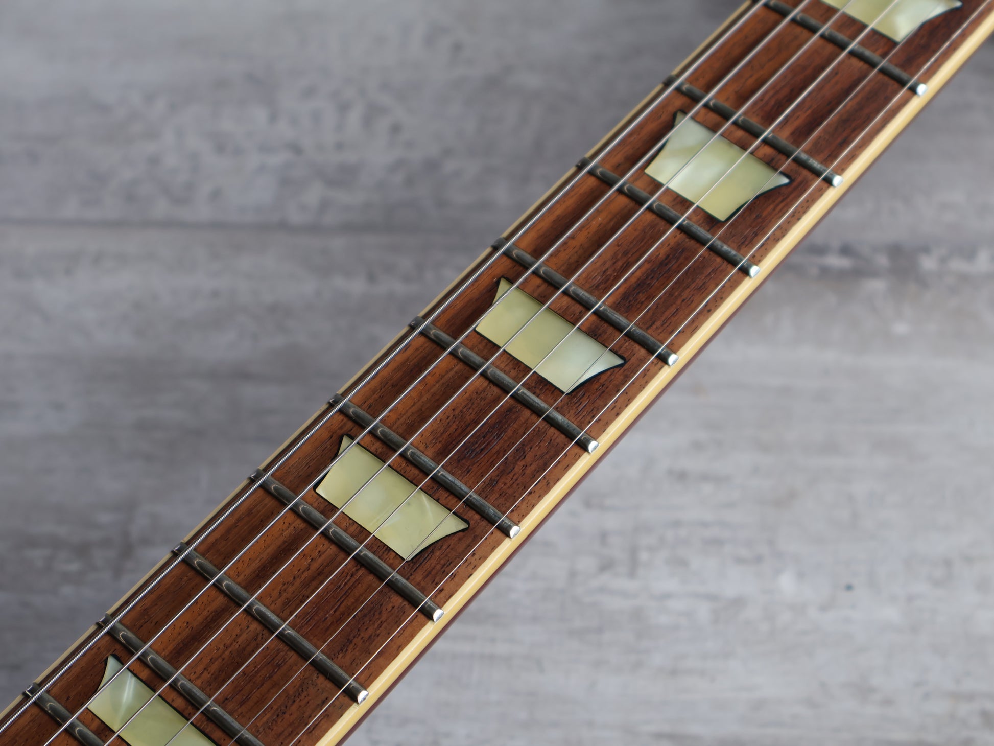 The closest thing you will get to a Japanese made Gibson is something with Orville on the headstock! Made by the Fujigen factory in 1997, the LPS-80F was a mid-range model from the Orville catalog featuring a mahogany body with a solid maple top (flaunting a Cherry Sunburst "fotoflame" laminate), a mahogany slim 60's neck and a 22 fret rosewood fingerboard. Weighing in at 4.2kg's, it appears all original with Gotoh hardware and Japanese humbuckers.