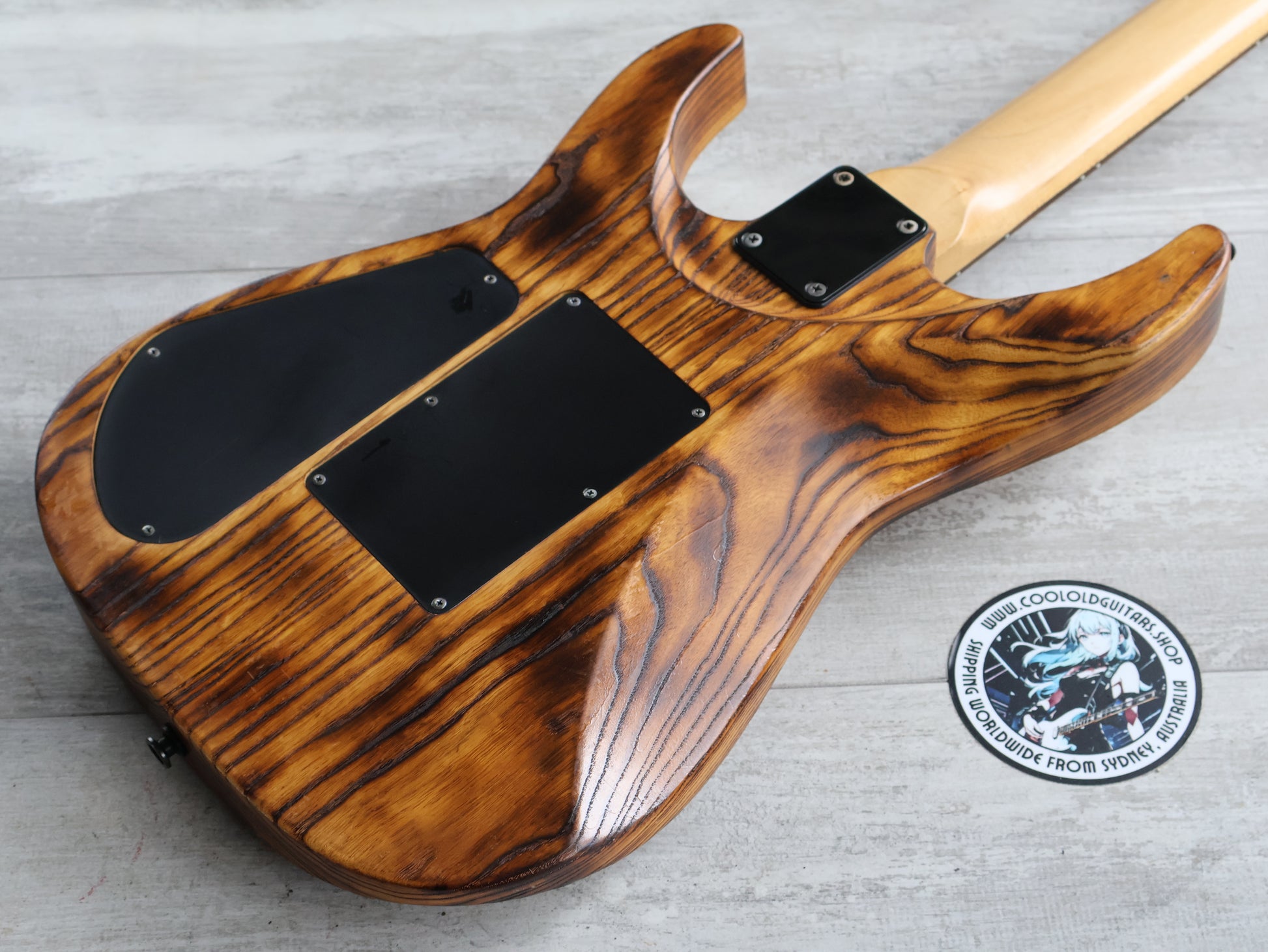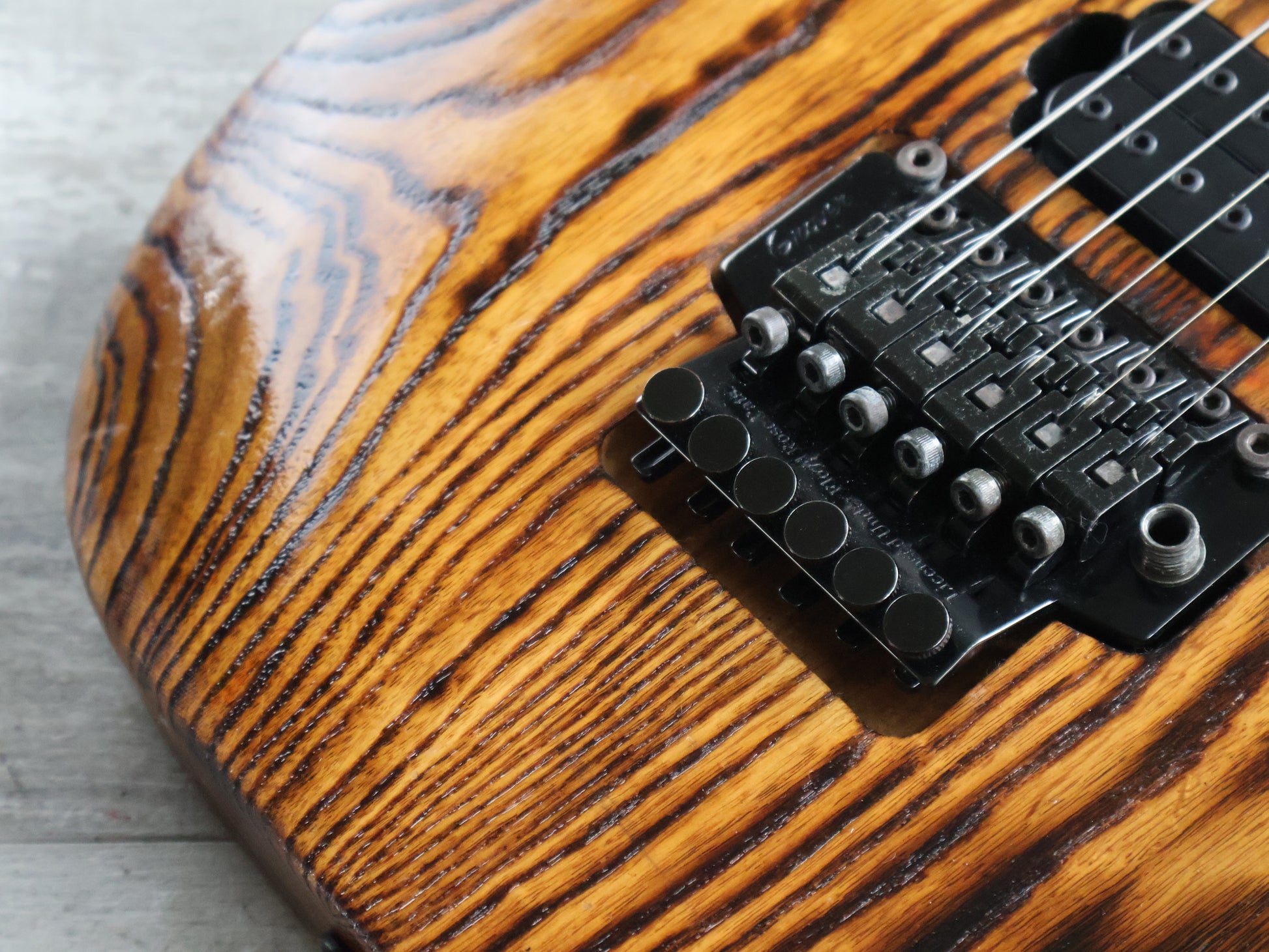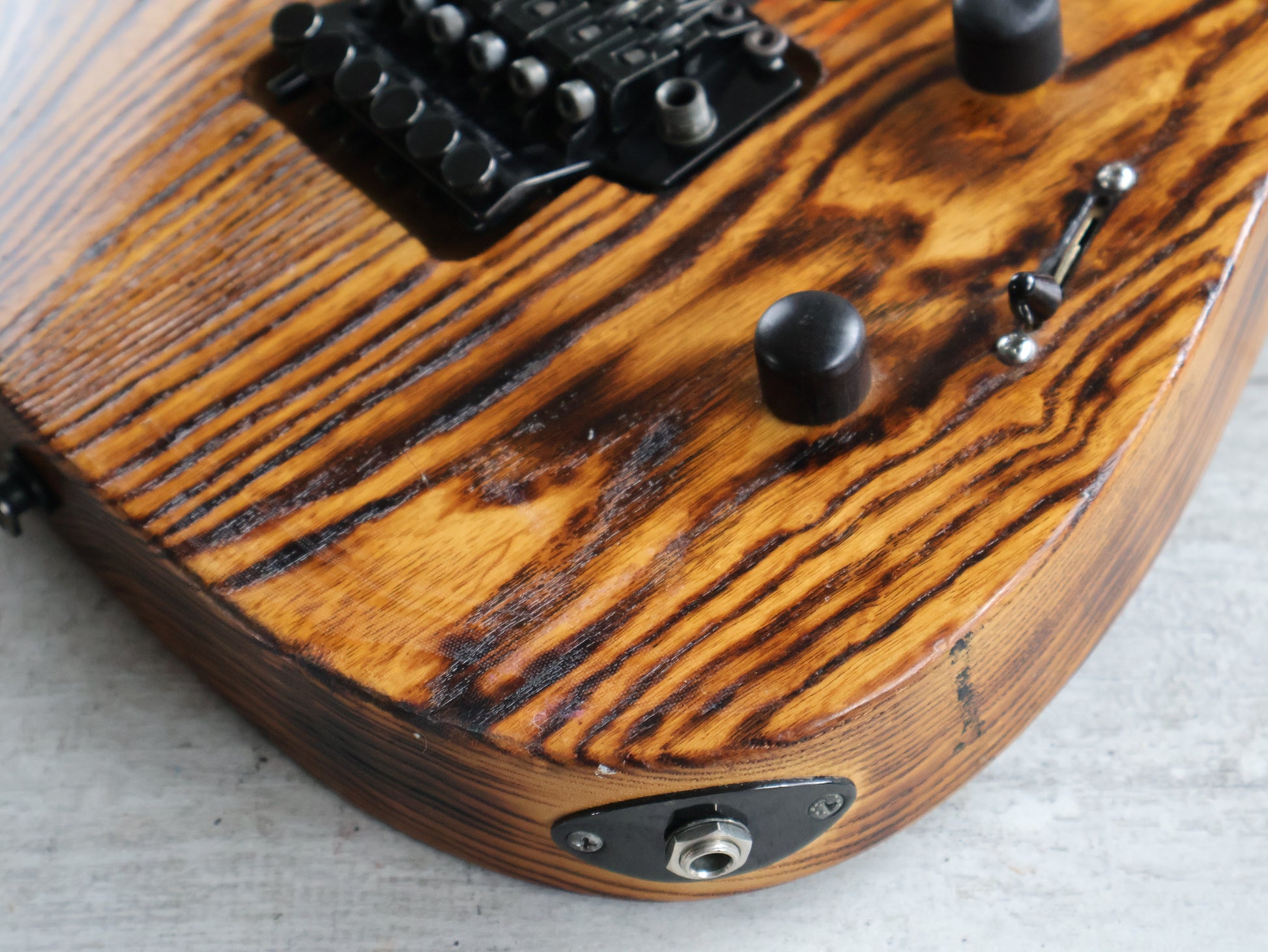 A beautifully customized shredder that was made in Japan in 1999 by Grover Jackson. Stunning ash body (that the previous owner had stripped back and flame treated) bolted to a slim profile maple neck with a 24 fret rosewood fingerboard (628mm scale length), it weighs 3.5kg's.