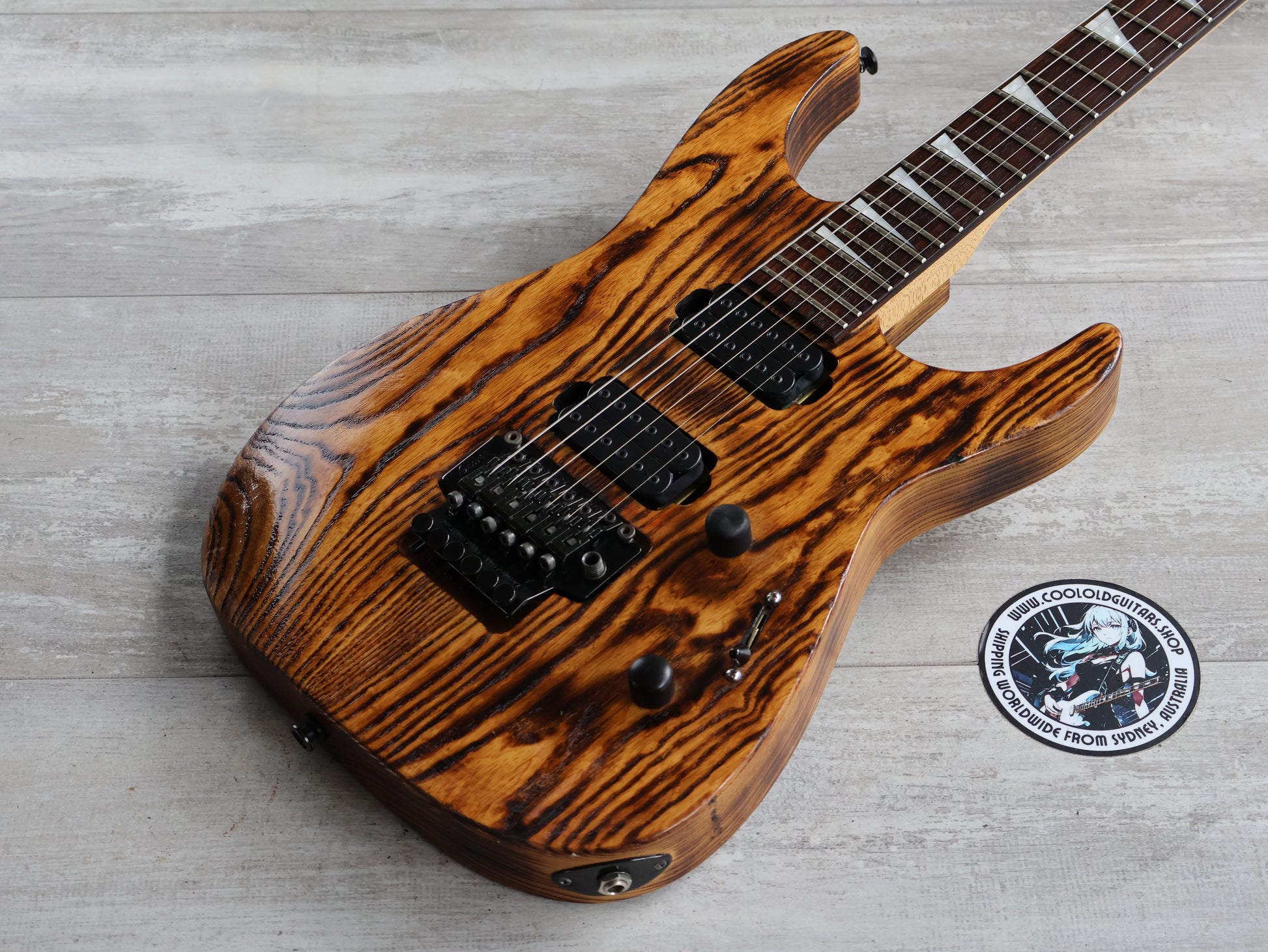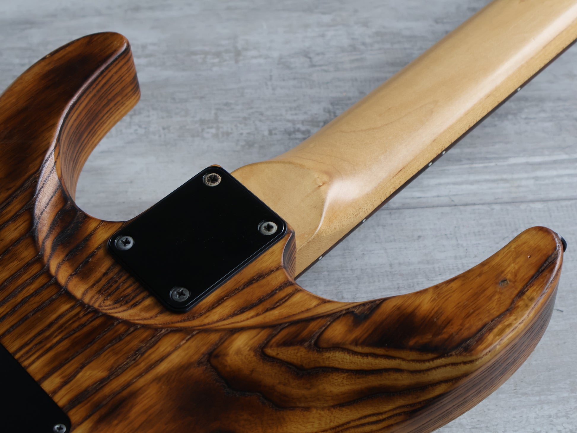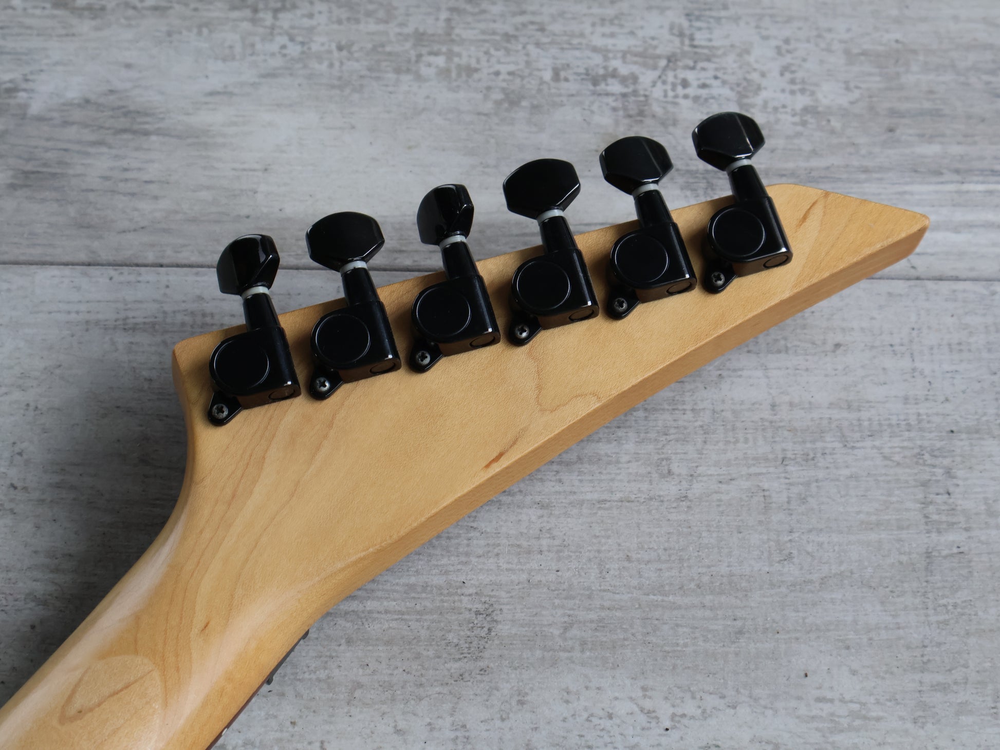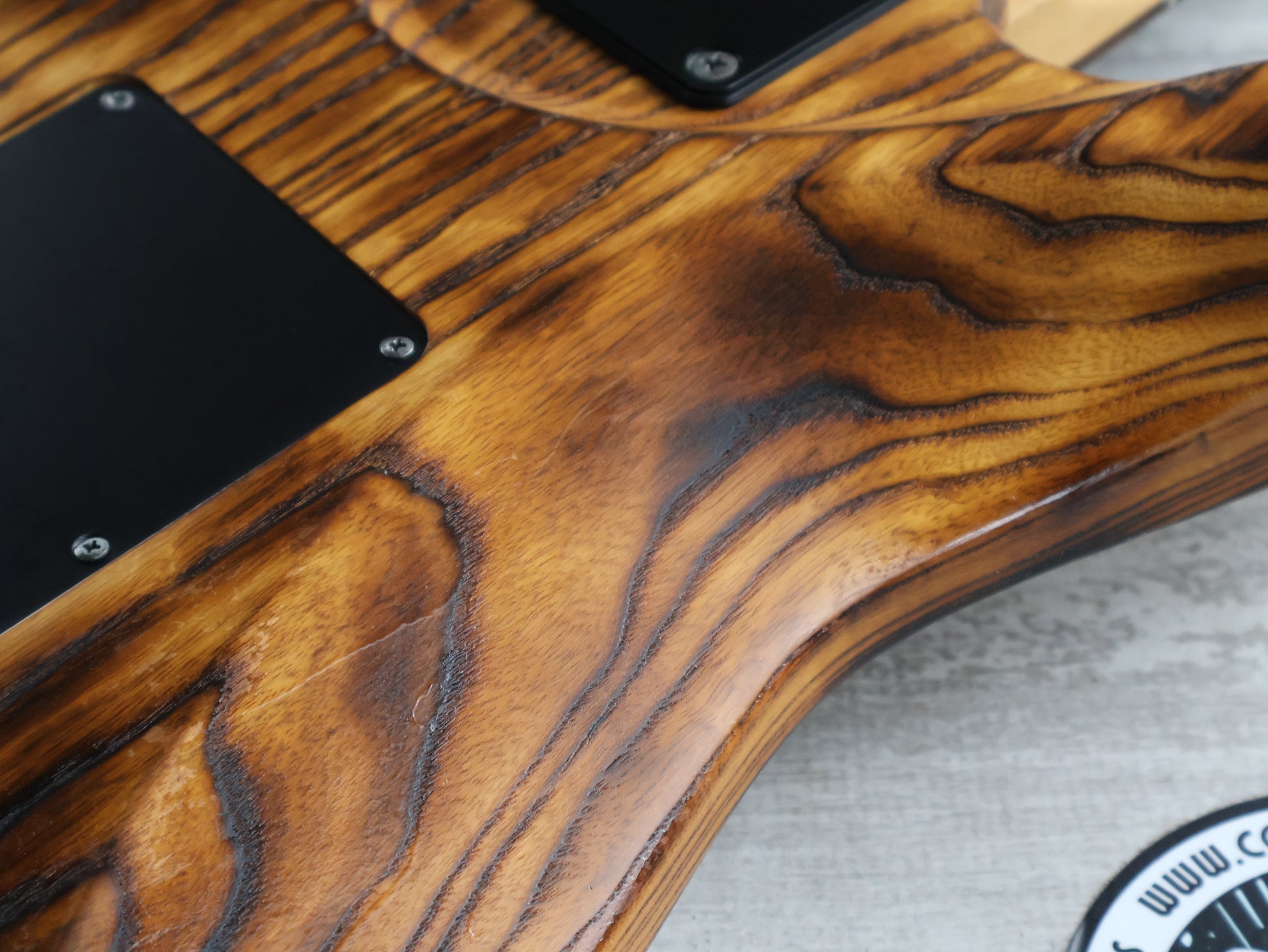 A beautifully customized shredder that was made in Japan in 1999 by Grover Jackson. Stunning ash body (that the previous owner had stripped back and flame treated) bolted to a slim profile maple neck with a 24 fret rosewood fingerboard (628mm scale length), it weighs 3.5kg's.