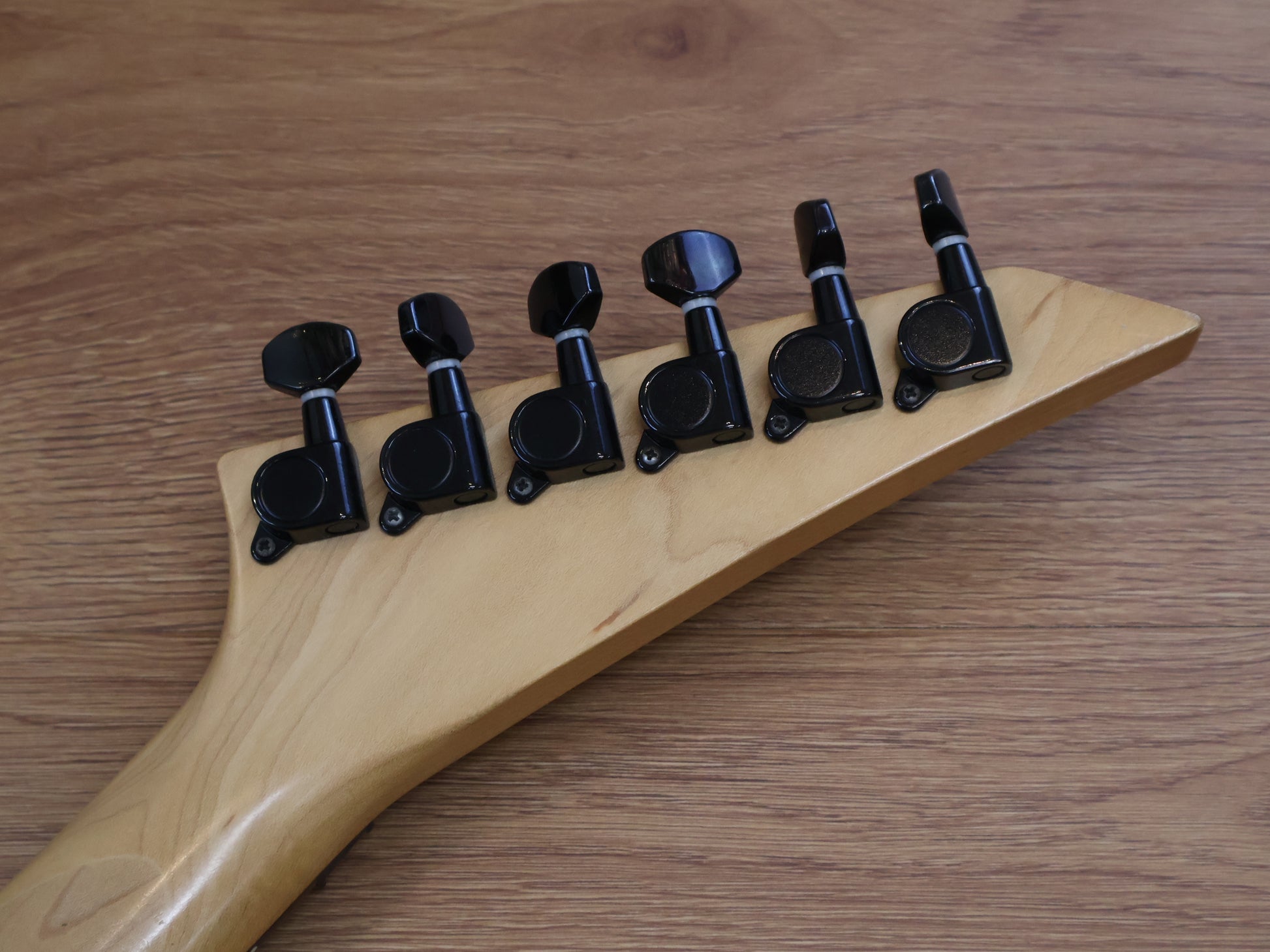 A beautifully customized shredder that was made in Japan in 1999 by Grover Jackson. Stunning ash body (that the previous owner had stripped back and flame treated) bolted to a slim profile maple neck with a 24 fret rosewood fingerboard (628mm scale length), it weighs 3.5kg's.