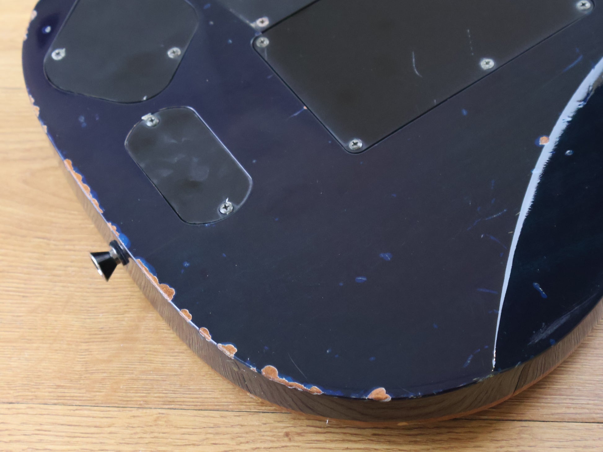 The RG2020X has dual output jacks. A small push-button controls these outputs. When this switch is in the up position the signal is split with the piezo going only to the upper jack and the magnetic pickup signal going only to the lower jack. When the push-button switch is down the upper jack is disabled and the lower jack provides signal from either the piezo or magnetic pickups based on the position of the 2-way mini toggle switch.