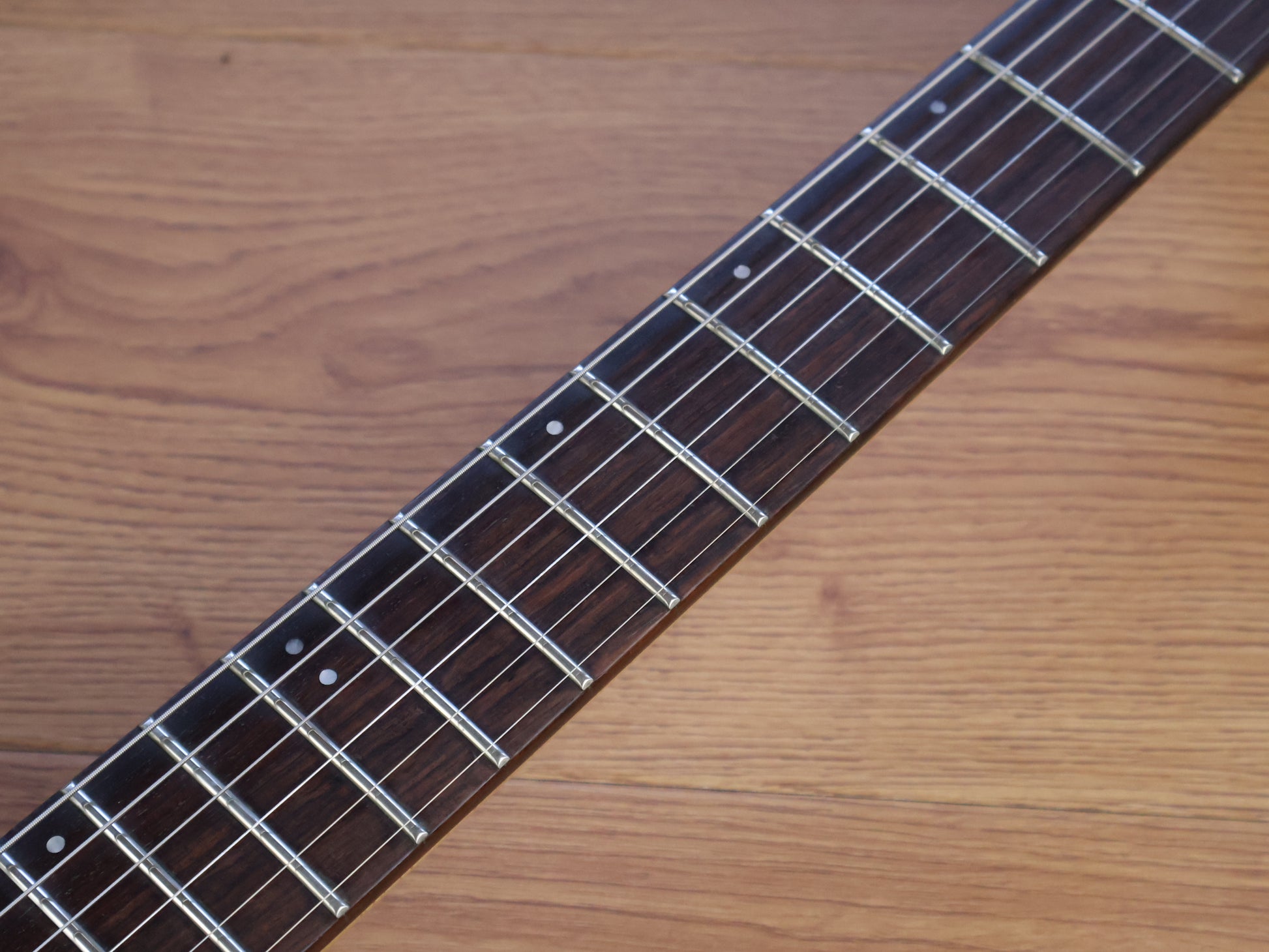 Well loved and used condition as pictured with some stickers and sticker tan and but no structural breaks or repairs. Frets have some light use and were polished prior to listing along with a fretboard oil. The truss works well and the neck is straight.
