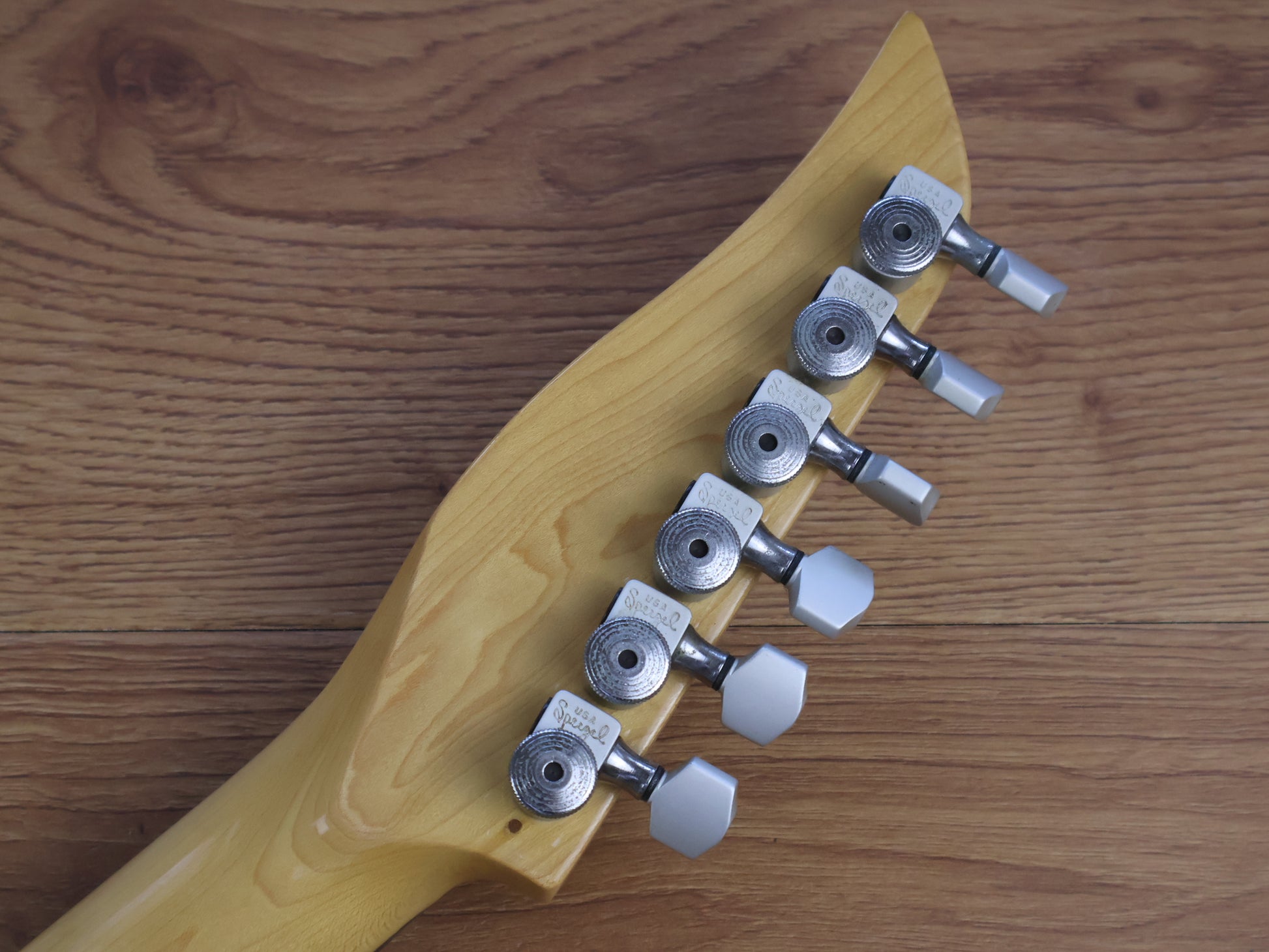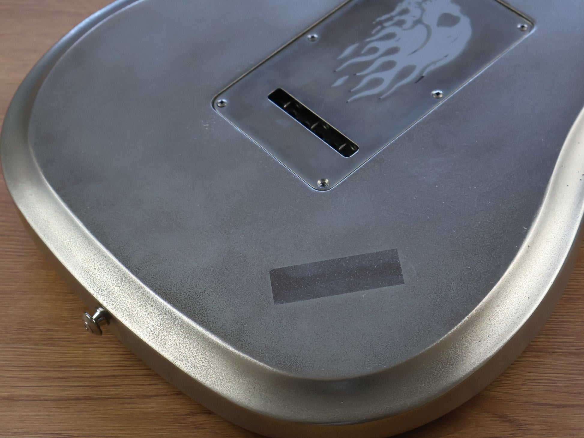 Tokai Talbo (Tokai Aluminium Body) guitars were introduced in 1980 and feature a solid aluminium body with a chamber underneath the pickguard. These were known for having a crystal clear clean tone that resonates beautifully both acoustically and plugged-in. Rosewood board and a maple neck, loaded with a 5-way selector controlling Tokai made HSS pickups, weighs 4.1kg's.