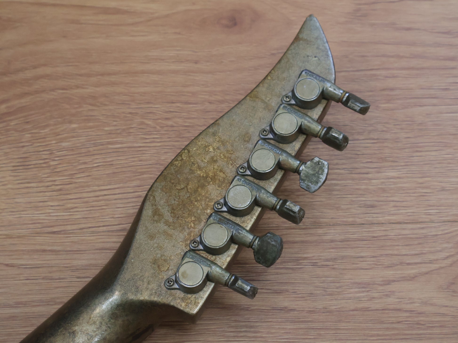 Seemingly a one-off (or at least a limited production build) from Tokai Japan, this Talbo has a fully rusted bronze aesthetic on the neck, body and all hardware. The work has been done very professionally and is incredible in both look and feel.