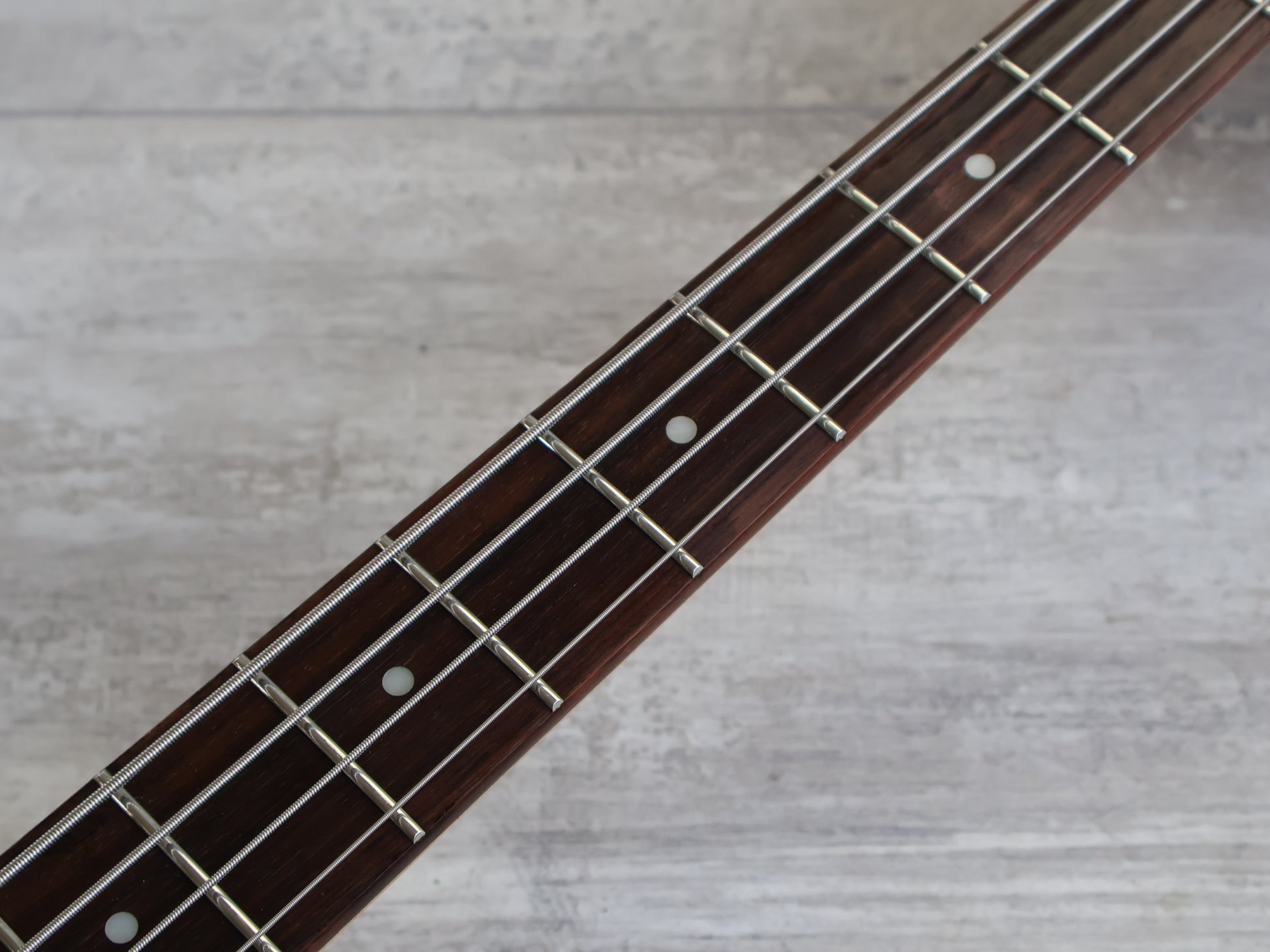 Made in the mid 2000's, the Grassroots branded G-T-60BIV was a Tetsu artist model and answers the question of "what if a Bass VI actually had 4-strings instead?". Solid alder body wearing a "Sparkling Fiesta Red" finish bolted to a maple neck and a 21 fret rosewood fingerboard, it weighs 4.5kg's.