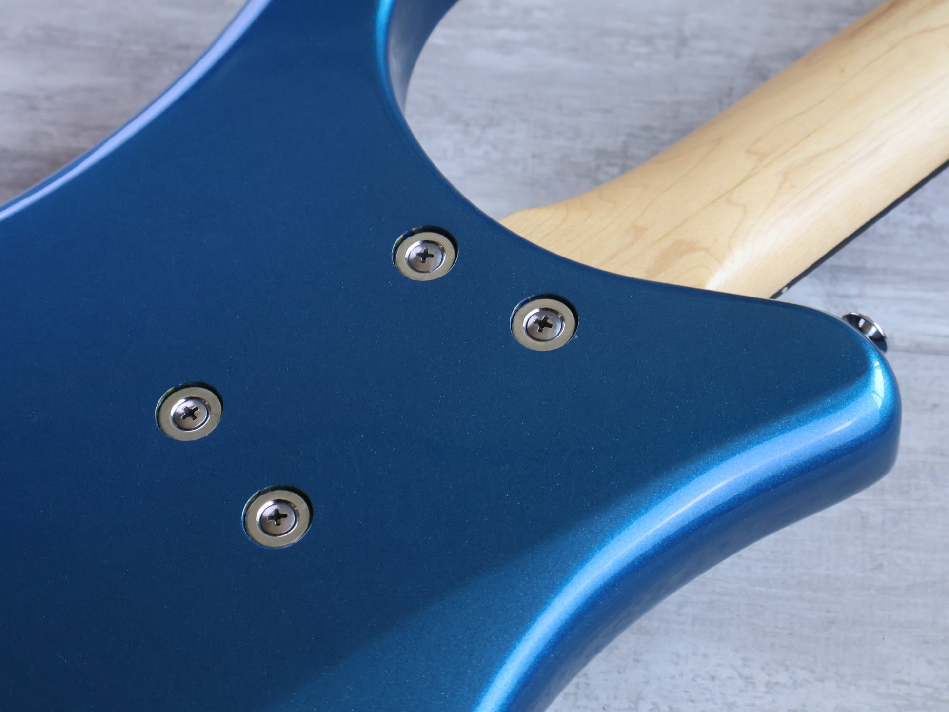 The modern reissue of the absolutely wild SBV Samurai bass. The SBV-550 features a metallic blue finish on an alder body with a maple neck and a 34" rosewood fingerboard (10" radius, 20 frets) and weighs 3.7kg's. Despite the odd shape, it plays very comfortably both seated and standing. This one looks to be all original.