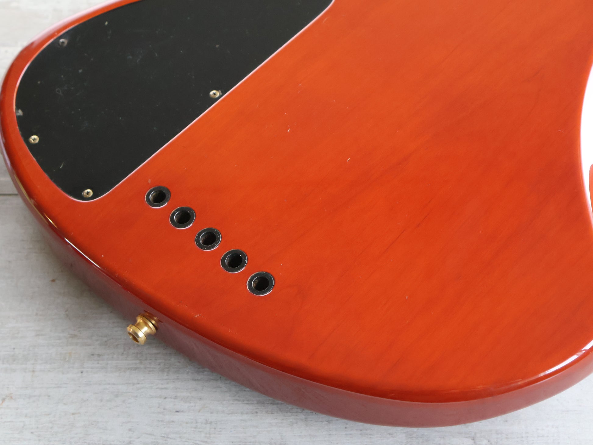 Made by ESP's Takada factory in 2001, this Custom Shop 5-string is an incredibly professional bass made by some of the best luthiers in Japan. Looks to be a solid alder body with a quilted maple top, 6-bolt maple neck with a 24 fret ebony fingerboard (47mm nut width, 19mm string spacing at the bridge, 35" scale length), it weighs 5kg's. Loaded with a Kent Armstrong active pickup set with a preamp and a set of Gotoh HAP tuners, it appears all original.