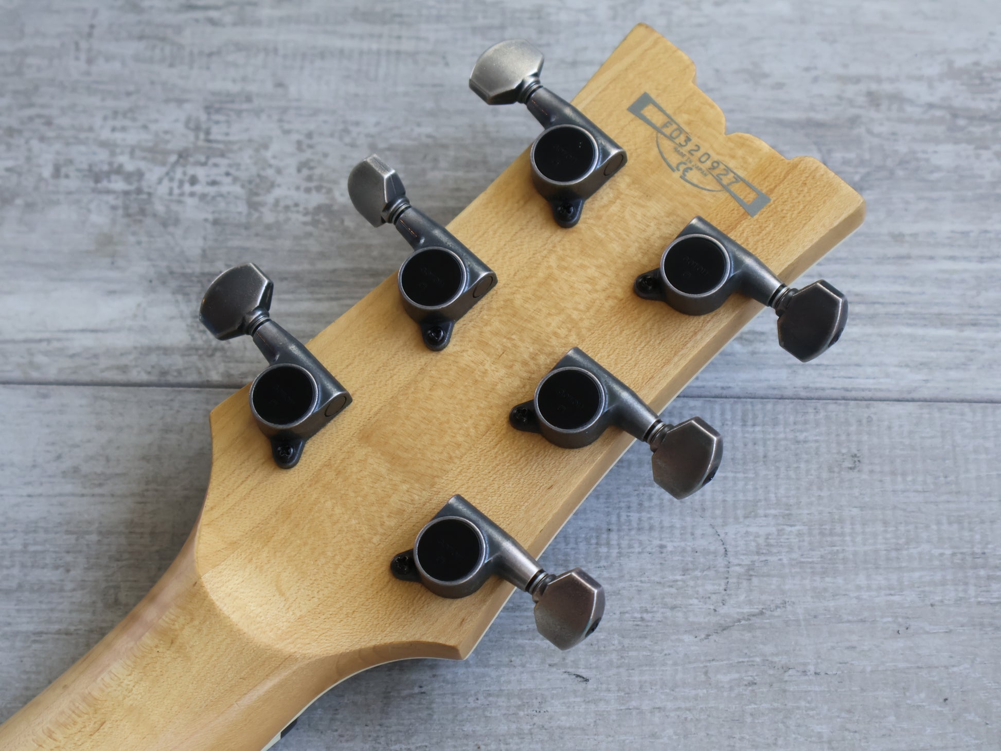 Released in 2002, the AX1220 was a short-lived Prestige model made by the Fujigen factory in Japan. Features a mahogany body bolted to a maple neck with a 22-fret bound rosewood fingerboard with a special inlay on the 12th fret. Loaded with dual Ibanez V7/V8 pickups with individual volume and tone controls and a wraparound style fixed bridge.