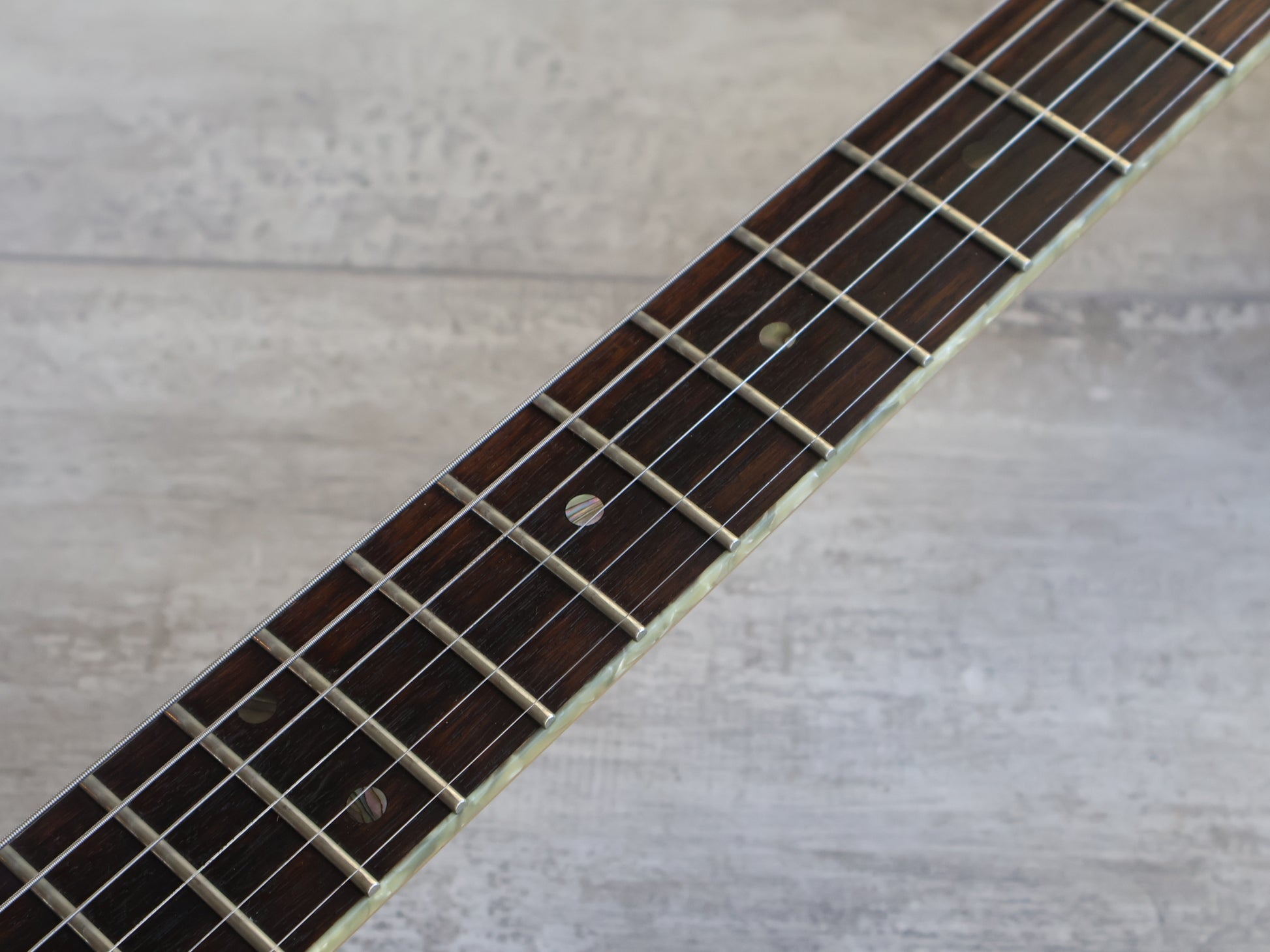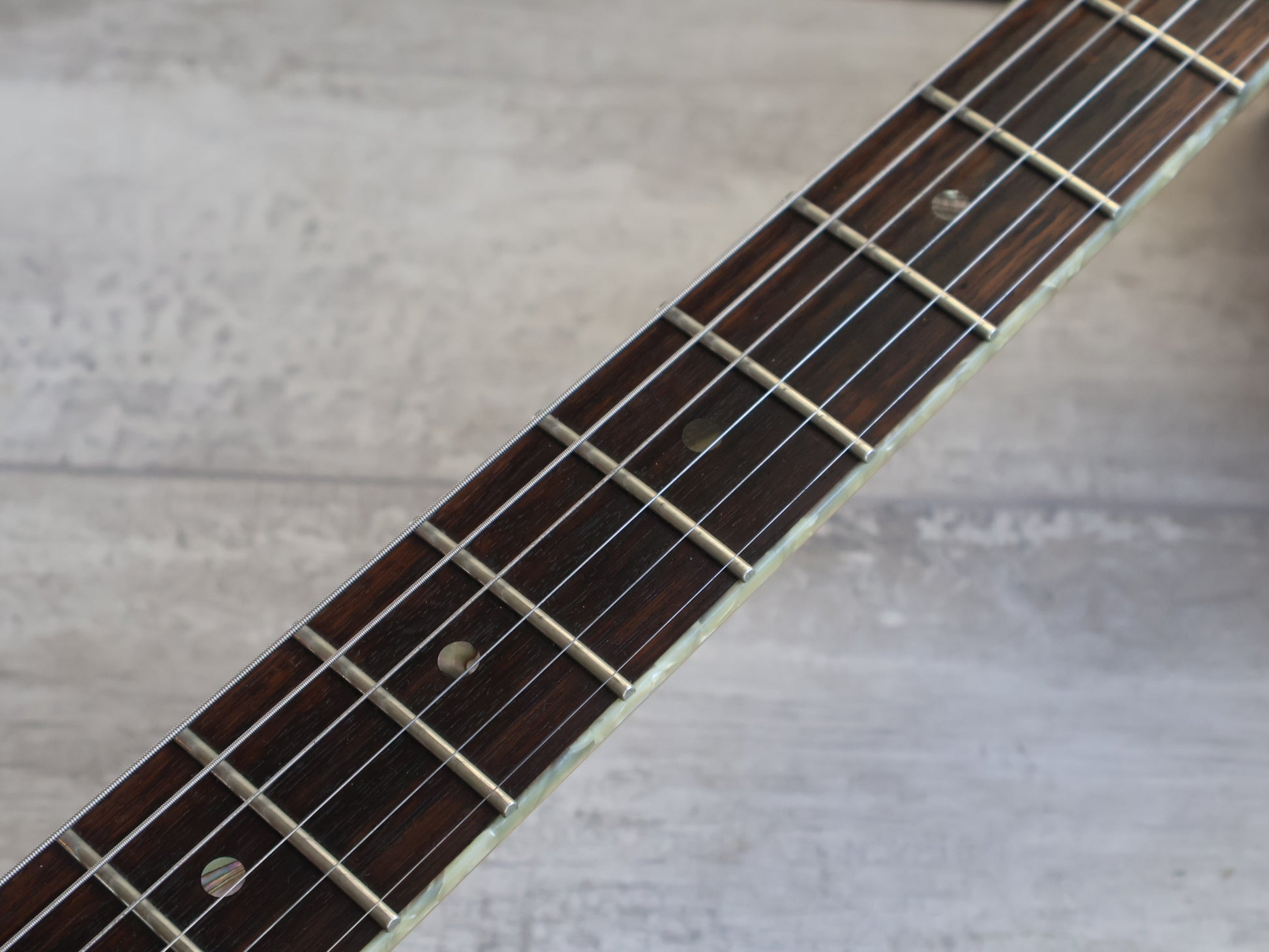 Clean used condition with signs of shredding over the hears but no breaks or repairs to be seen, received a full professional setup and service prior to listing including a truss adjustment, fretboard oil, fret polish and electronics flush.