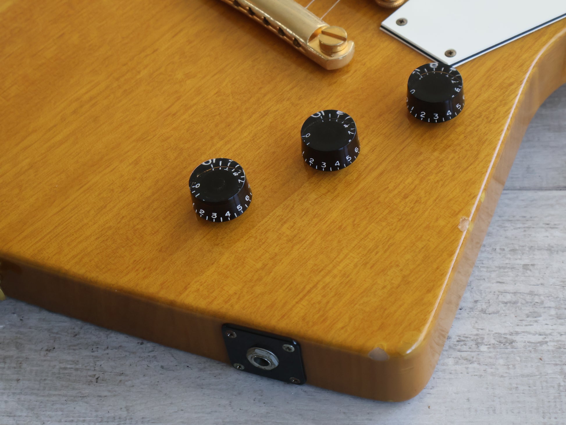 Made in Japan in 2004 and released under the Edwards branding, the E-EX-80D was ESP's take on the '58 Gibson Explorer. Solid mahogany body set to a slim 60's style mahogany neck with a 22 fret rosewood fingerboard, this one weighs 3.6kg's. Loaded with Gotoh hardware and a pair of unbranded humbuckers, it appears to be all original.