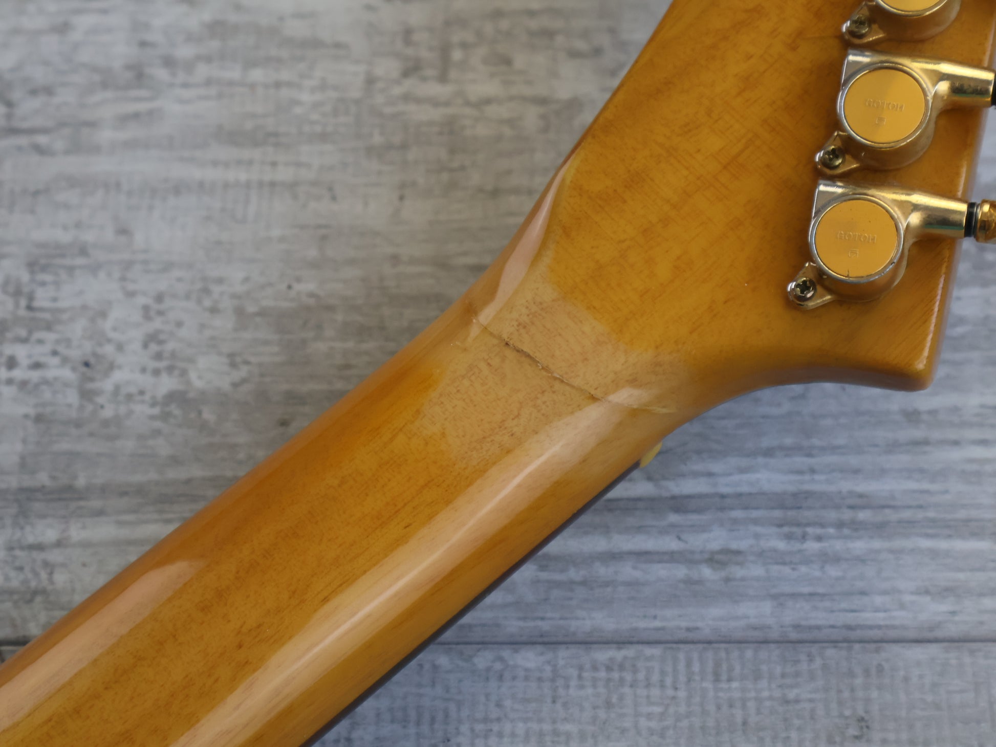 Received a solid headstock repair at some stage as pictured, the area is solid with no movement and is smooth to the touch. Cosmetically it's in good condition with light playwear, received a full professional setup and service prior to listing.