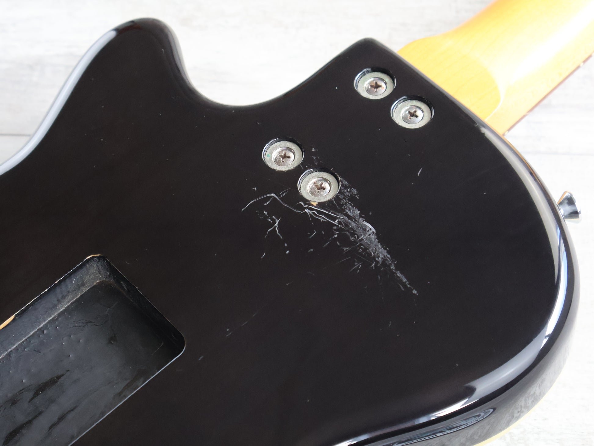 Loaded with three single coil P90 sized pickups (including a staggered pole bridge pickup), this one has a hardtail bridge for a bit of added stability. Seemingly all original except for the strap buttons. Good used condition as pictured, restrung and given a basic setup/service prior to listing. The truss works as it should and the neck is straight with plenty of life in the frets.
