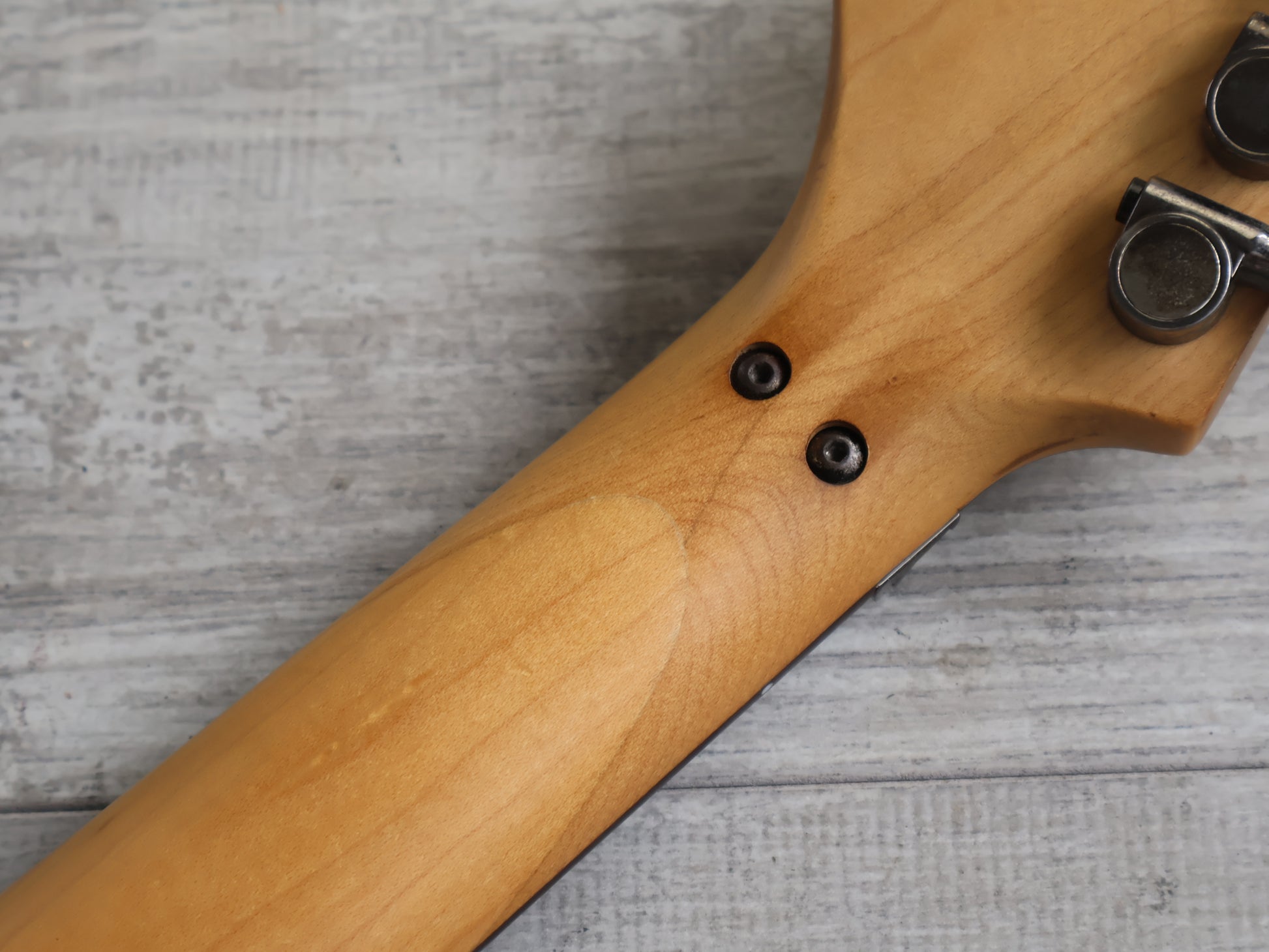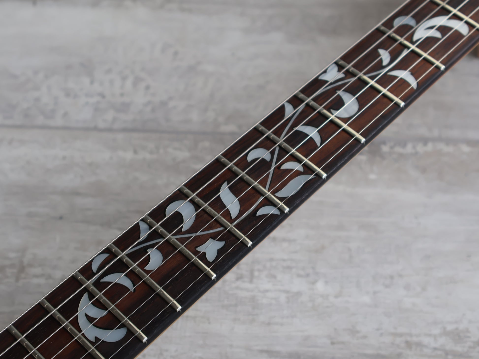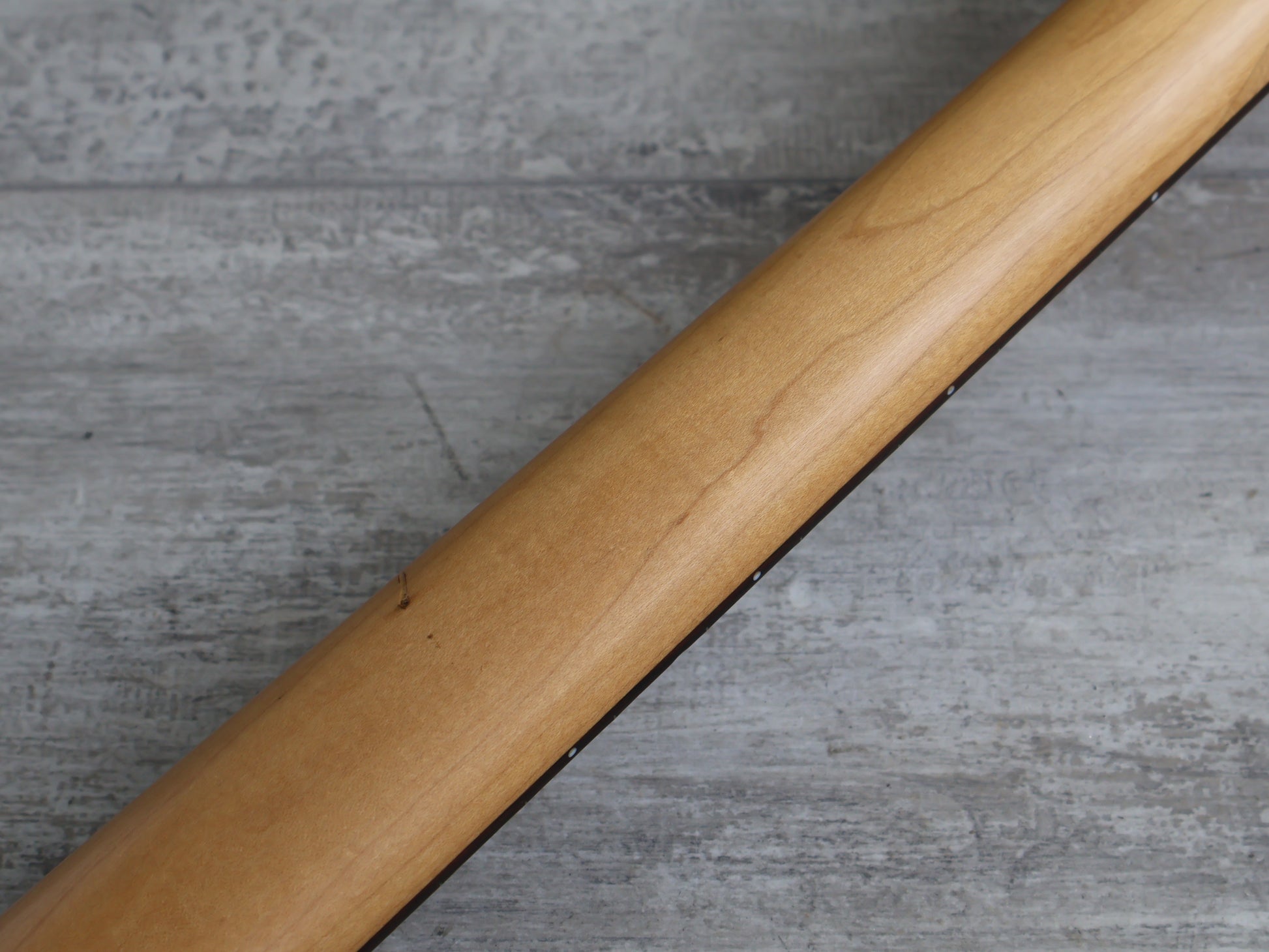 Given a full professional setup and service prior to listing, the neck is straight and the truss works perfectly. The frets are shiny and smooth with life left and it plays great as it sits. There's a small repair near the scarf joint that was injected with glue and clamped so it's smooth to touch and rock solid with no movement.