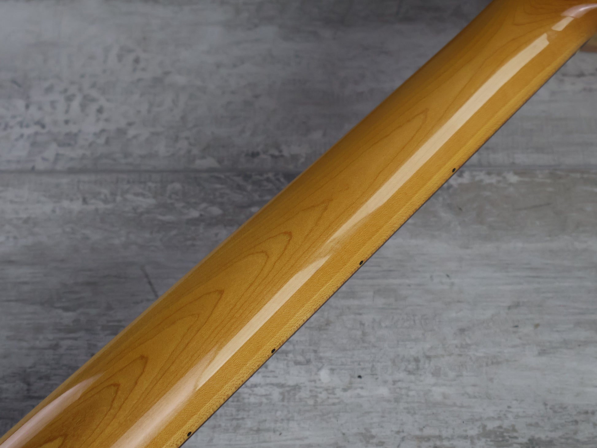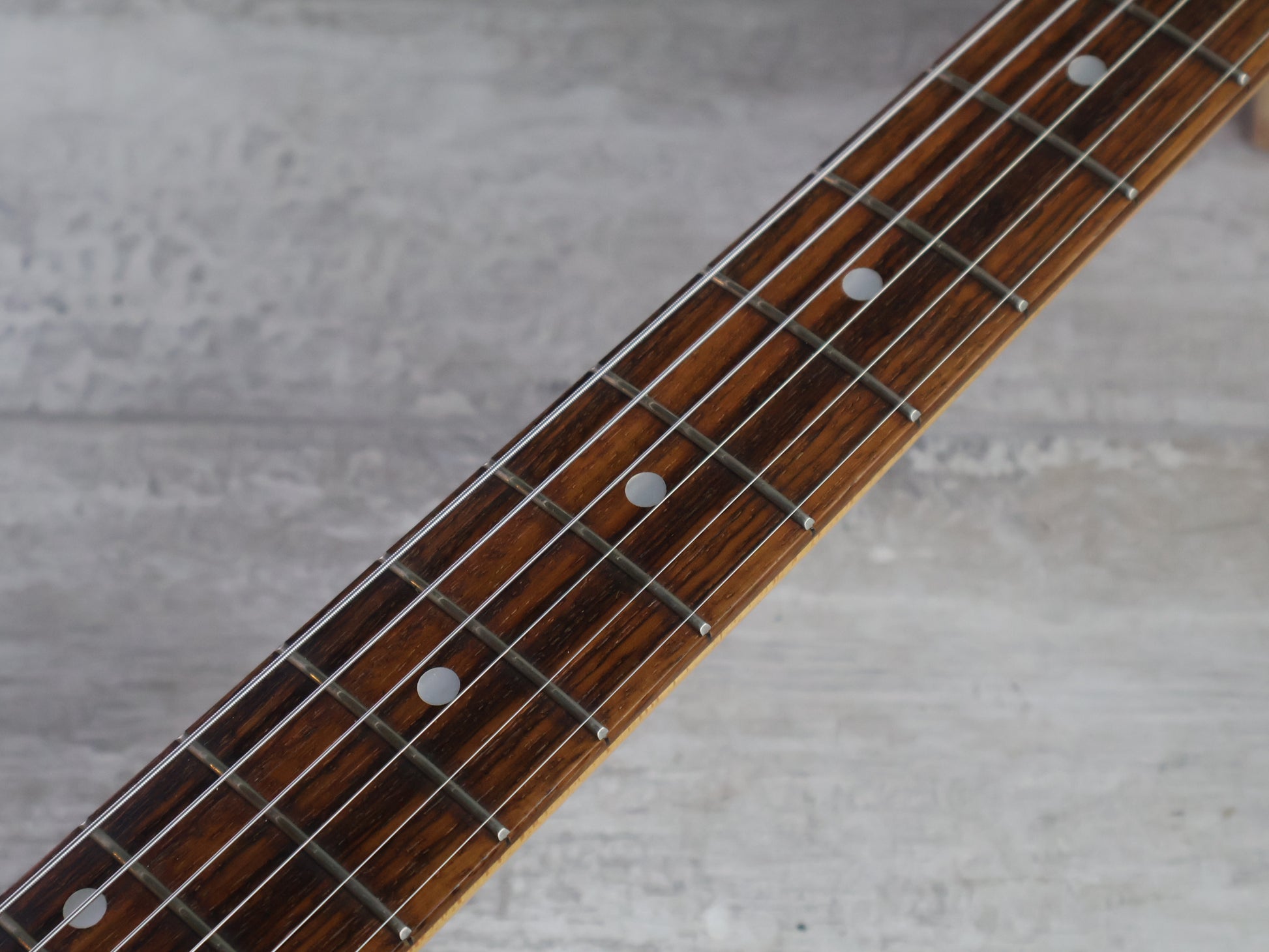 Made by the Tokai factory in 2006, the JG66-93 was one of Fender Japan's last true '66 reissue models before replacing them with the generic "Classic" and "Traditional" models. Alder body bolted to a short scale maple neck with a 21 fret rosewood fingerboard (41mm nut width, 7.25" radius), it weighs 4kg's. Looks to be mostly original with Gotoh hardware and Fender Japan single coils along with an upgraded bridge and Buzz Stop.