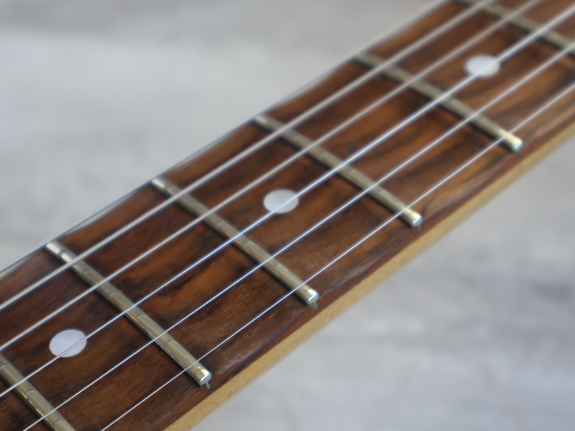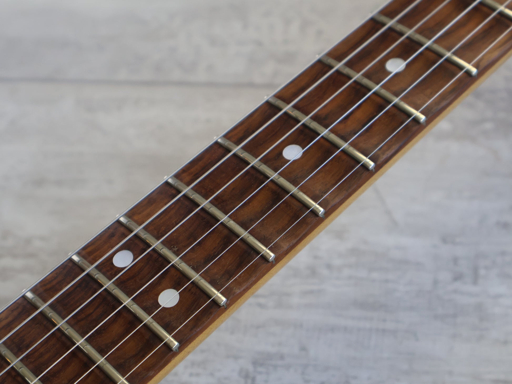 Made by the Tokai factory for Fender Japan in 2006, this is a heavily modified '72 Reissue Stratocaster. Basswood body with a maple neck and aftermarket scalloped rosewood fingerboard (7.25" radius, 21 jumbo frets), it weighs 3.9kg's.