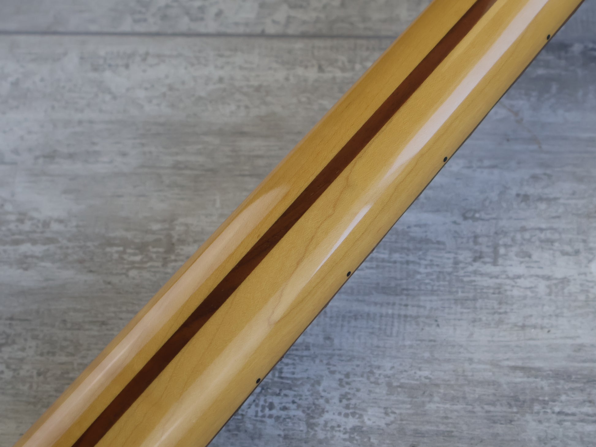 The previous owner replaced the pickups with two Fender Lace Sensor Gold single coils and a generic middle single coil, had it fully refretted with jumbo frets and also glued the neck to the body for added sustain..