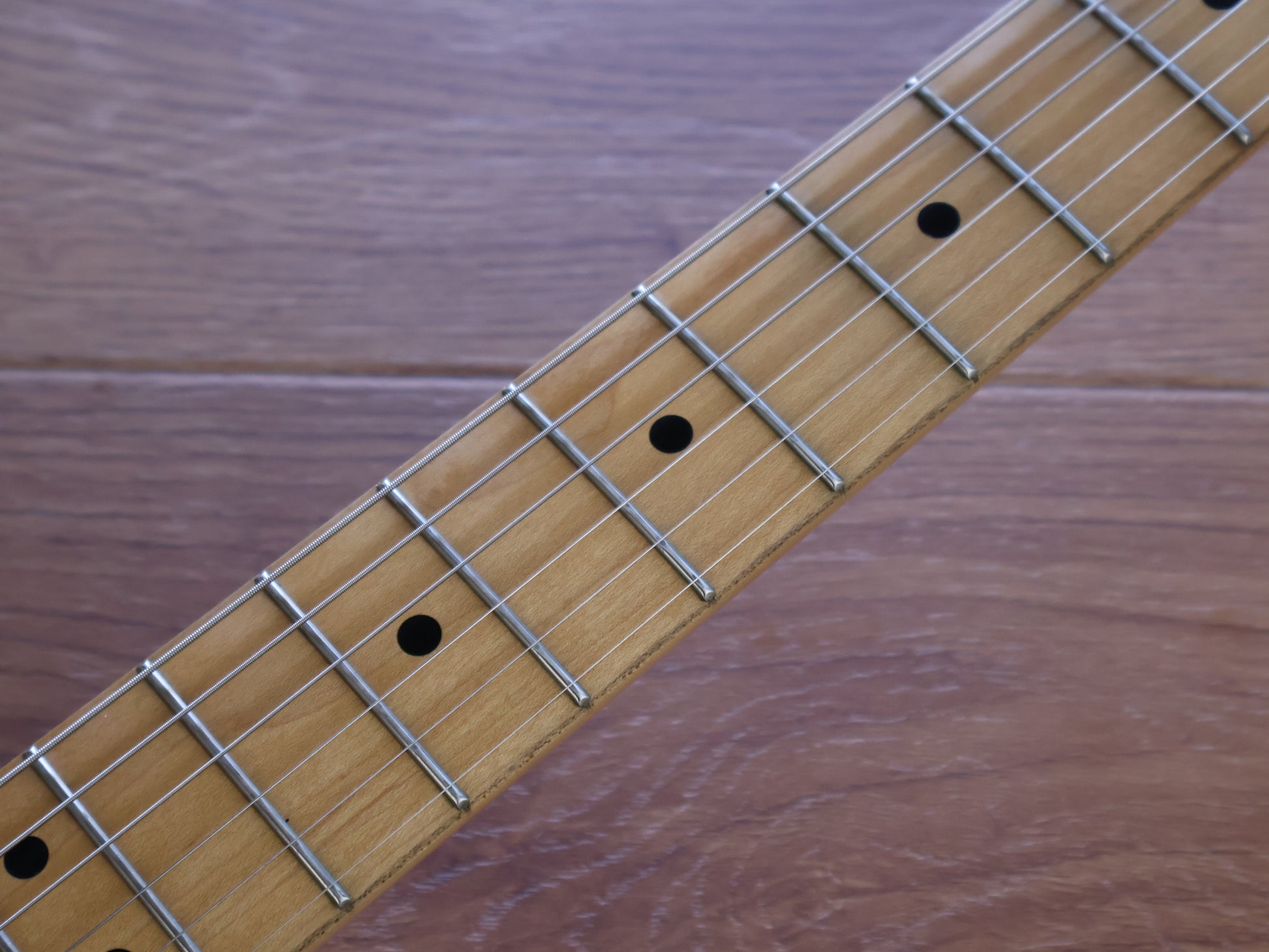 Made in Japan in 2007, the ST-STD model was the Japanese equivalent of the American Standard. Weighs 3.5kg’s, it’s made with what looks to be a sunburst basswood body and 21 fret rosewood fingerboard on a maple neck. This one has a HSH pickguard installed with two generic pickups in the middle and neck positions and a Seymour Duncan in the bridge.