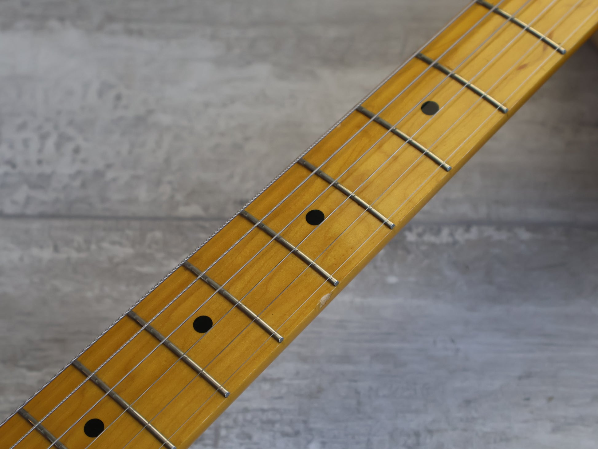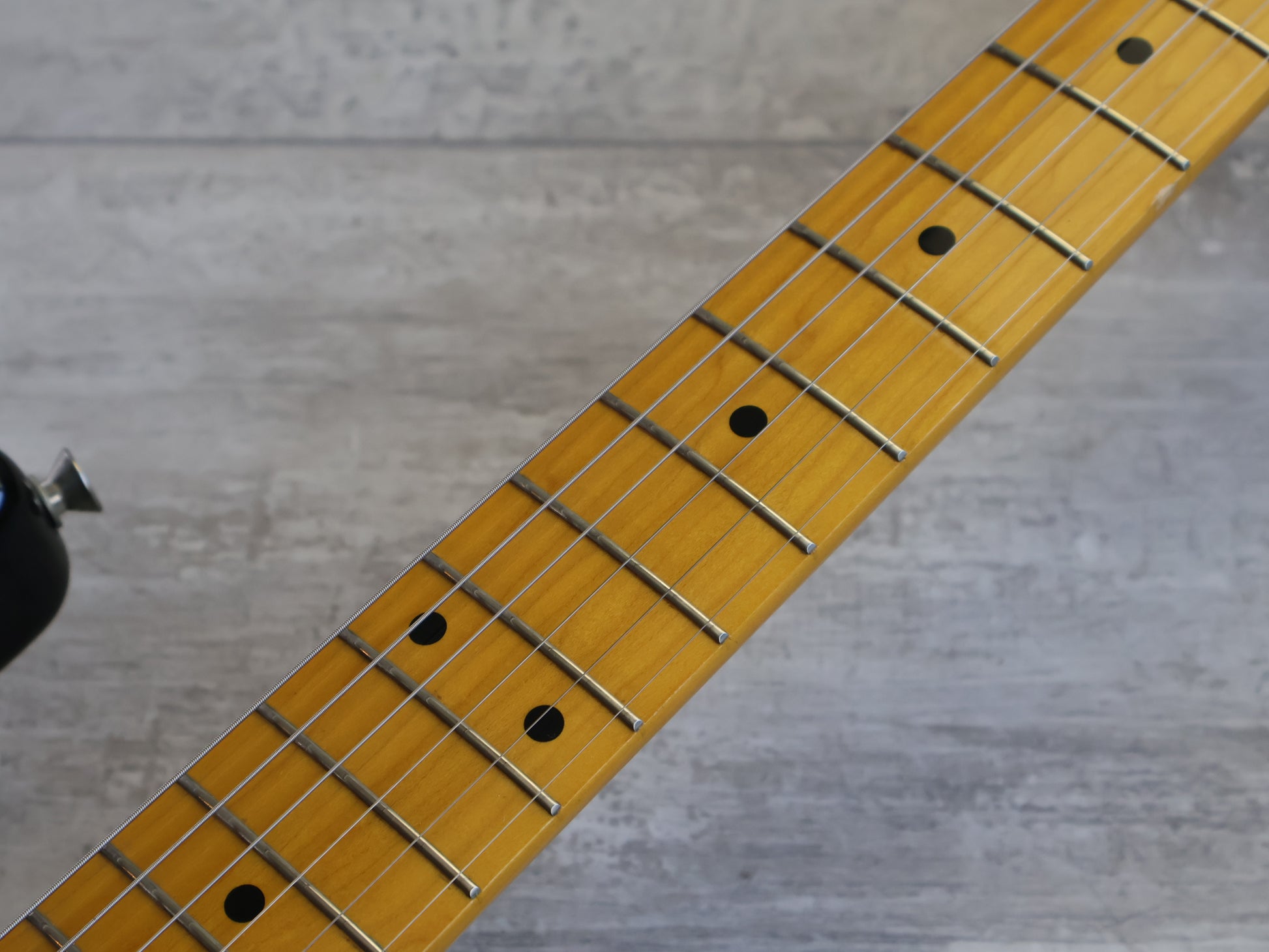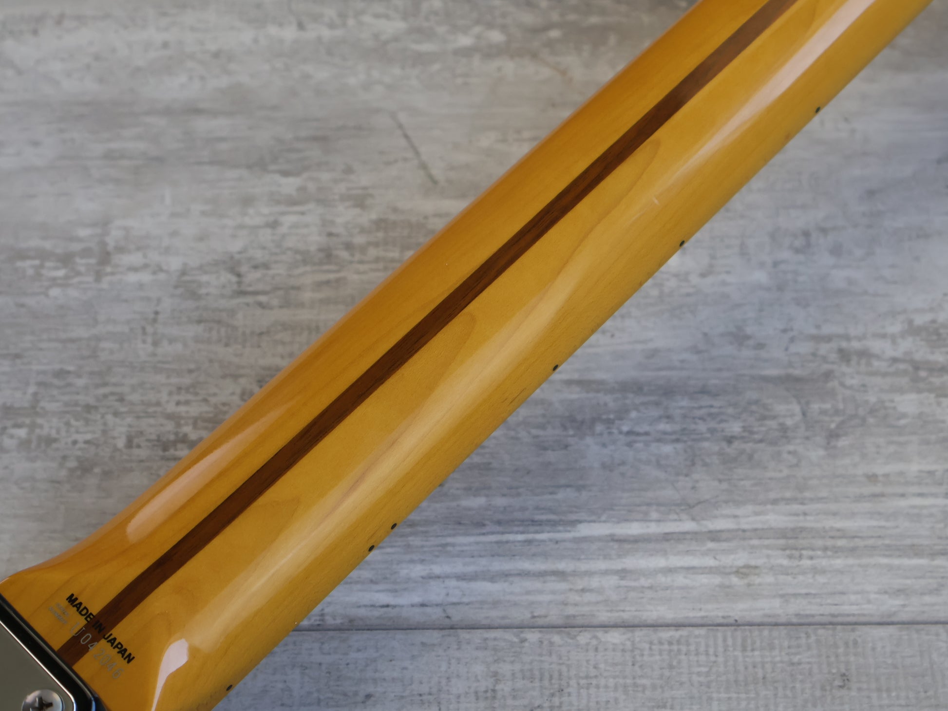 Made in Japan in 2008, the ST57-US was a '57 reissue Stratocaster that features a basswood body with a maple neck (slim C profile, 7.25" radius) and factory fitted Fender USA ST-Vintage alnico single coils (with an aftermarket unbranded bridge pickup). Weighs 3.4kg's and is in clean used condition as pictured with a straight neck, shiny frets and a fully functional truss.