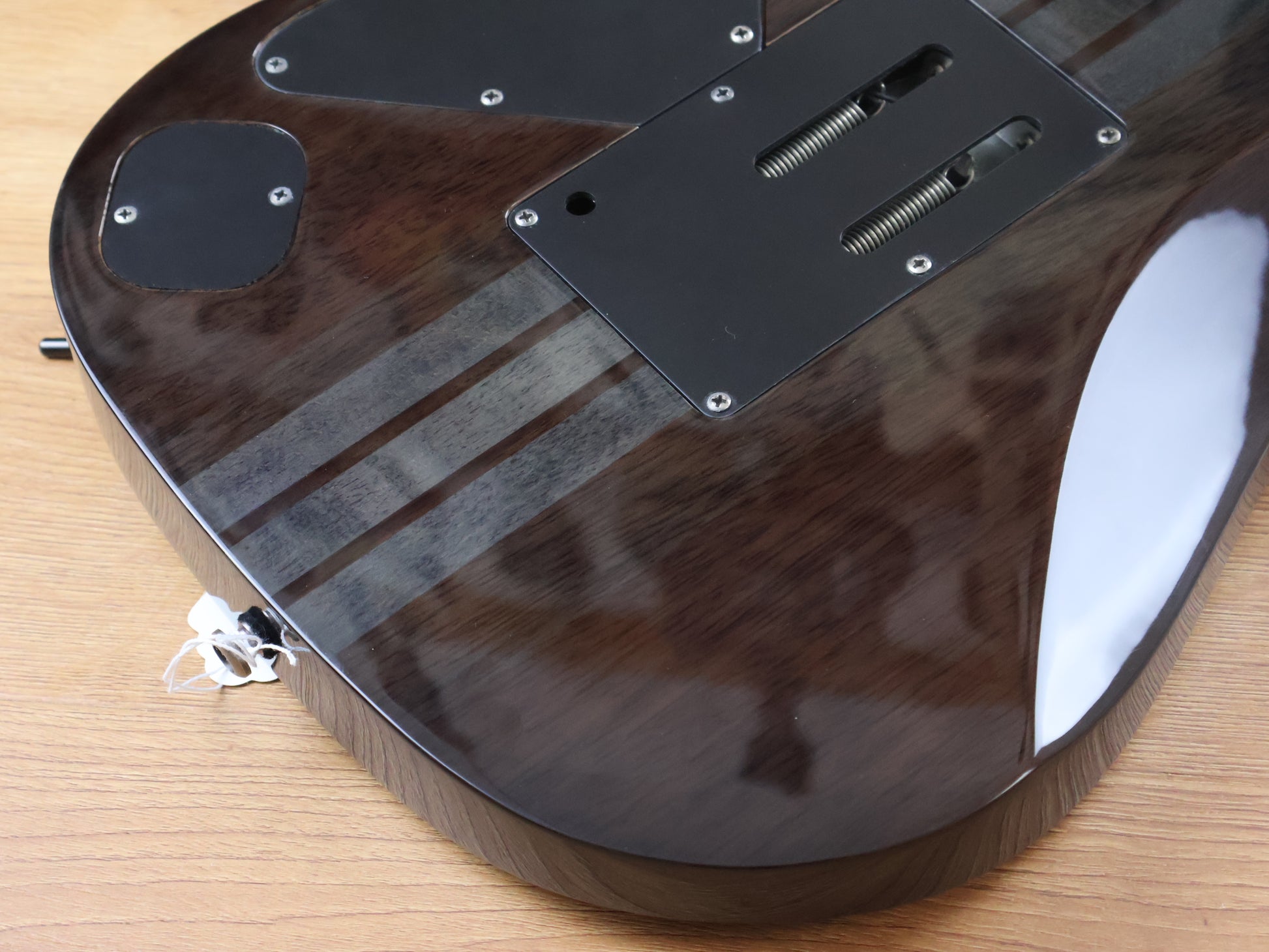 The RGT42DXFM features neck through body construction with mahogany body wings and a flamed maple top attached to a maple and walnut neck with a 24-fret bound rosewood fingerboard with deluxe sharktooth position markers. Components include dual Ibanez Infinity humbucking pickups and an Edge III double locking tremolo bridge.