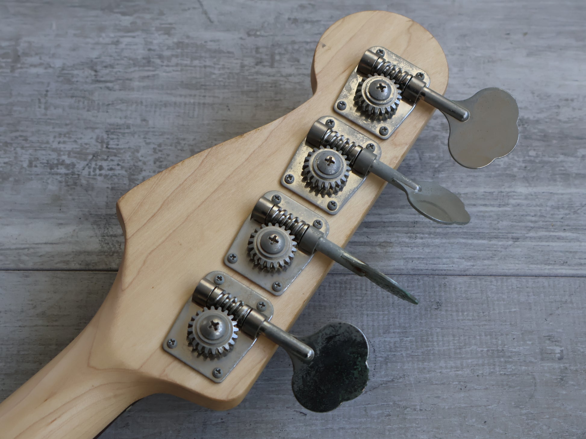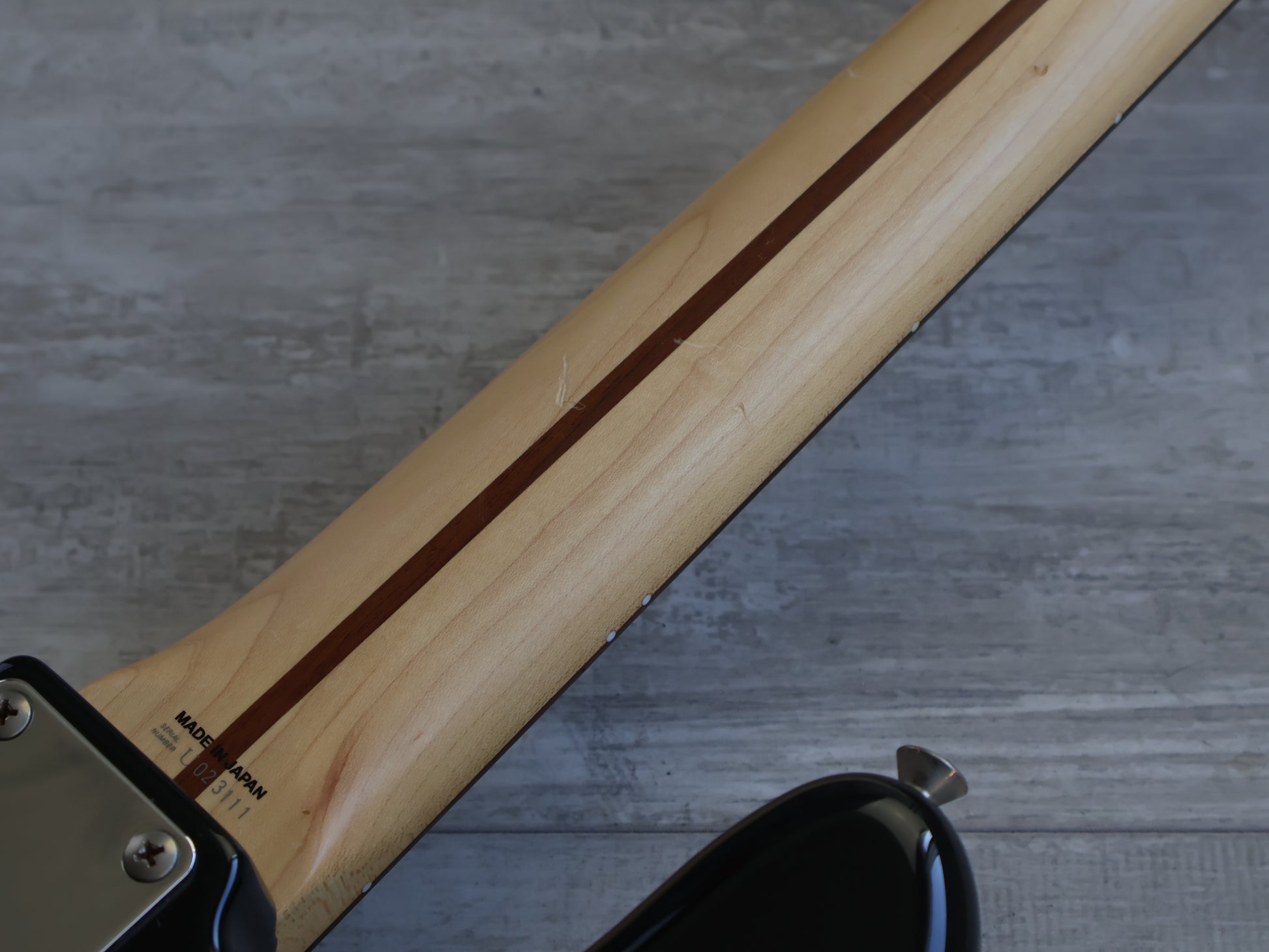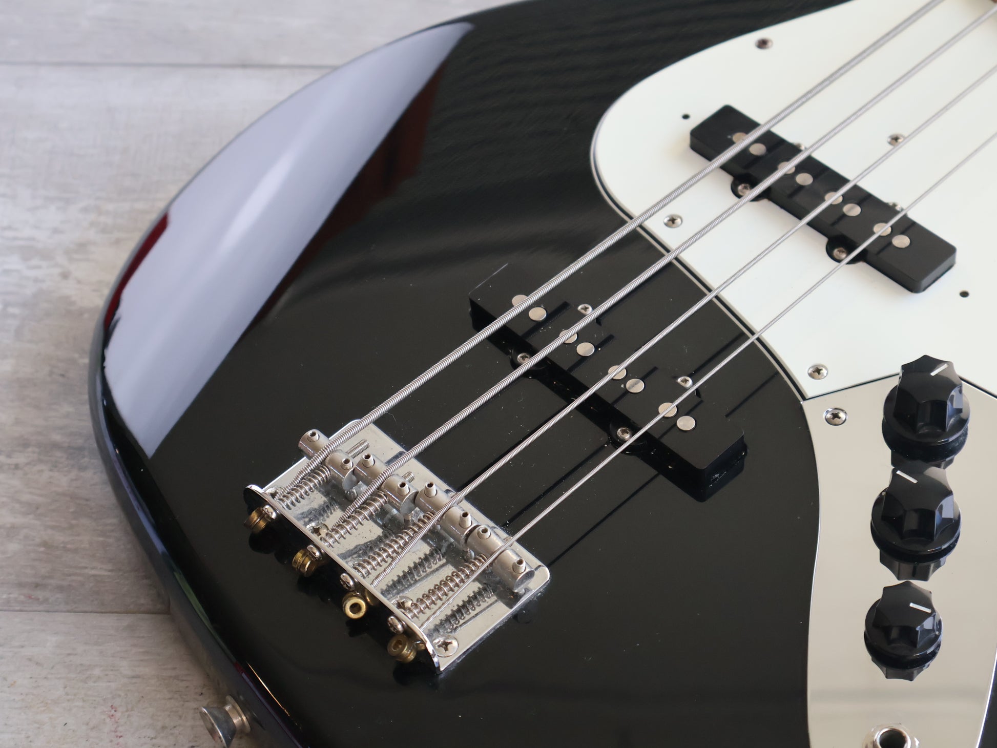 Made in Japan in 2010, this is the Japanese version of the American Standard Jazz Bass. Glossy black finish on a basswood body with a maple neck and rosewood fingerboard (39mm nut width), it weighs 3.9kg’s.