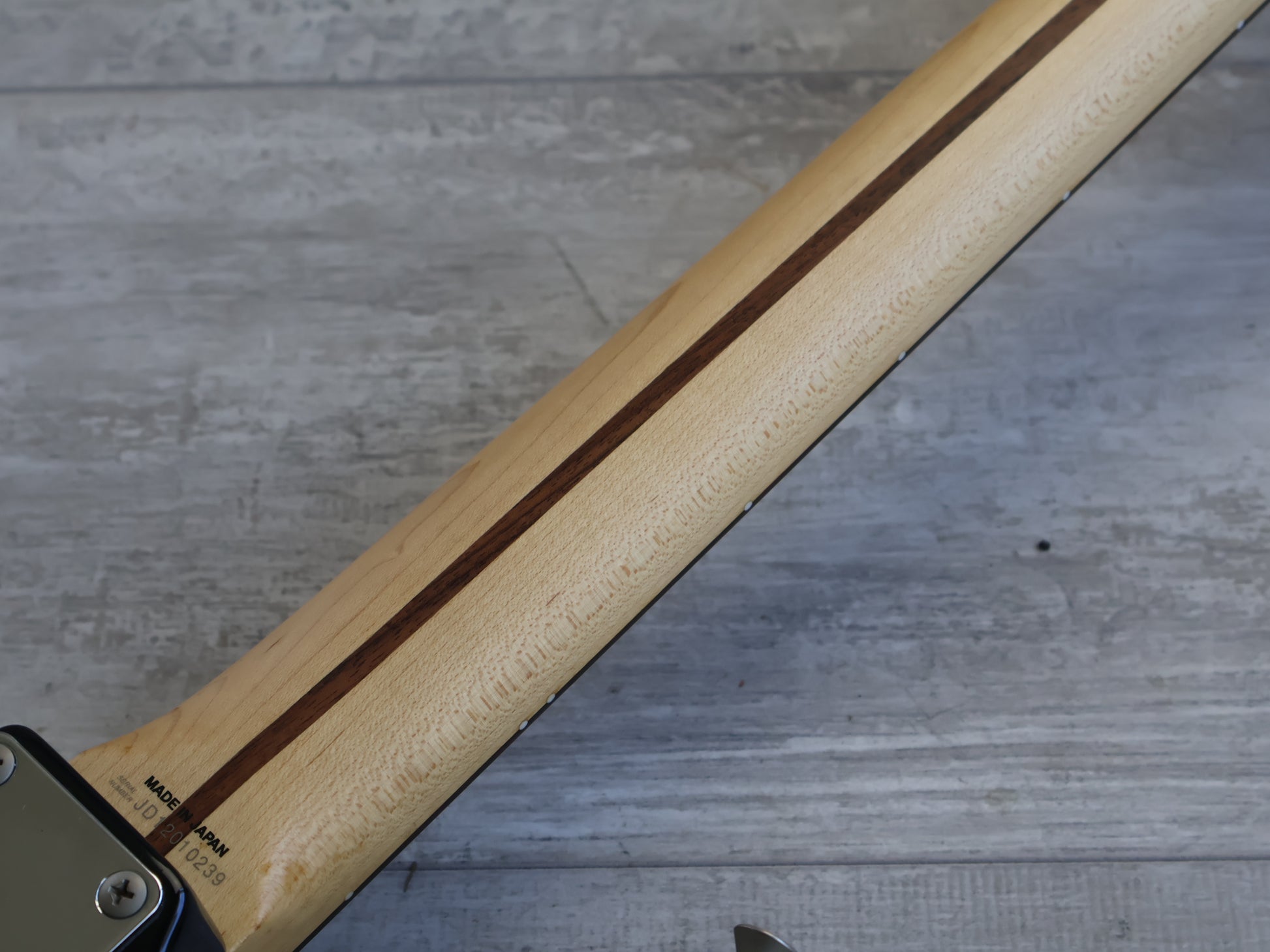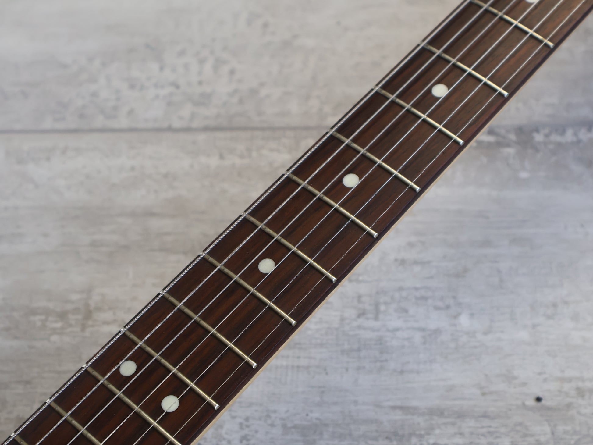 Made in Japan in 2012, the ST-STD model was the Japanese equivalent of the American Standard. Weighs 3.3kg’s, it features a gloss black finish on a basswood body and 21 fret rosewood fingerboard on a satin feel maple neck. Seems to be all original as pictured with Fender Japan pickups, a 5-way selector and Gotoh tuners.