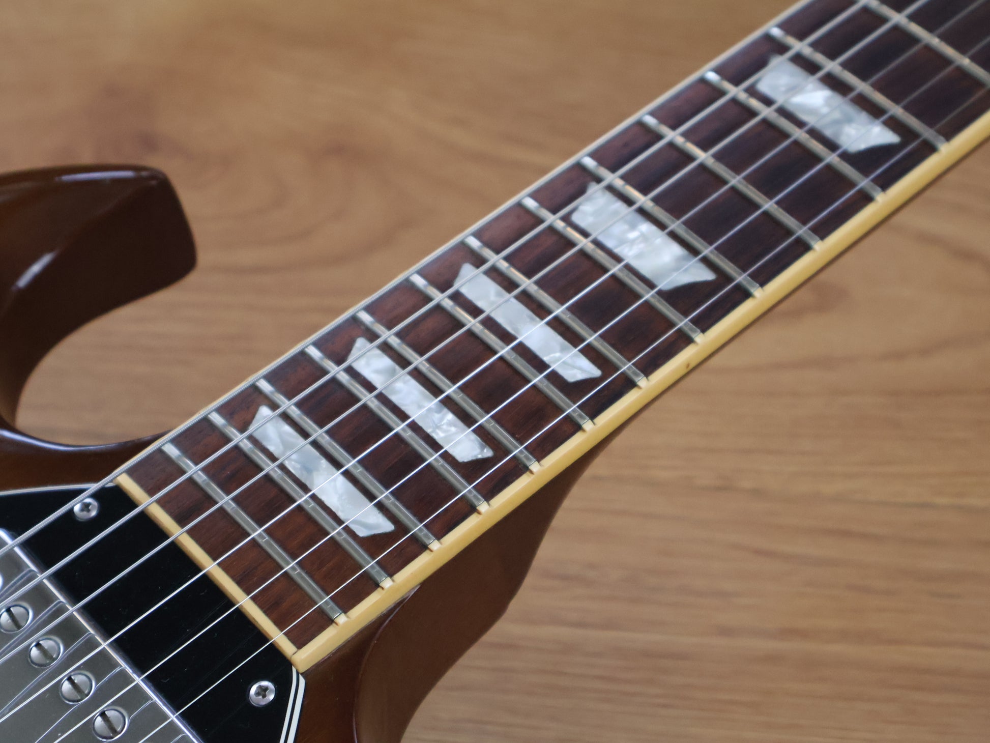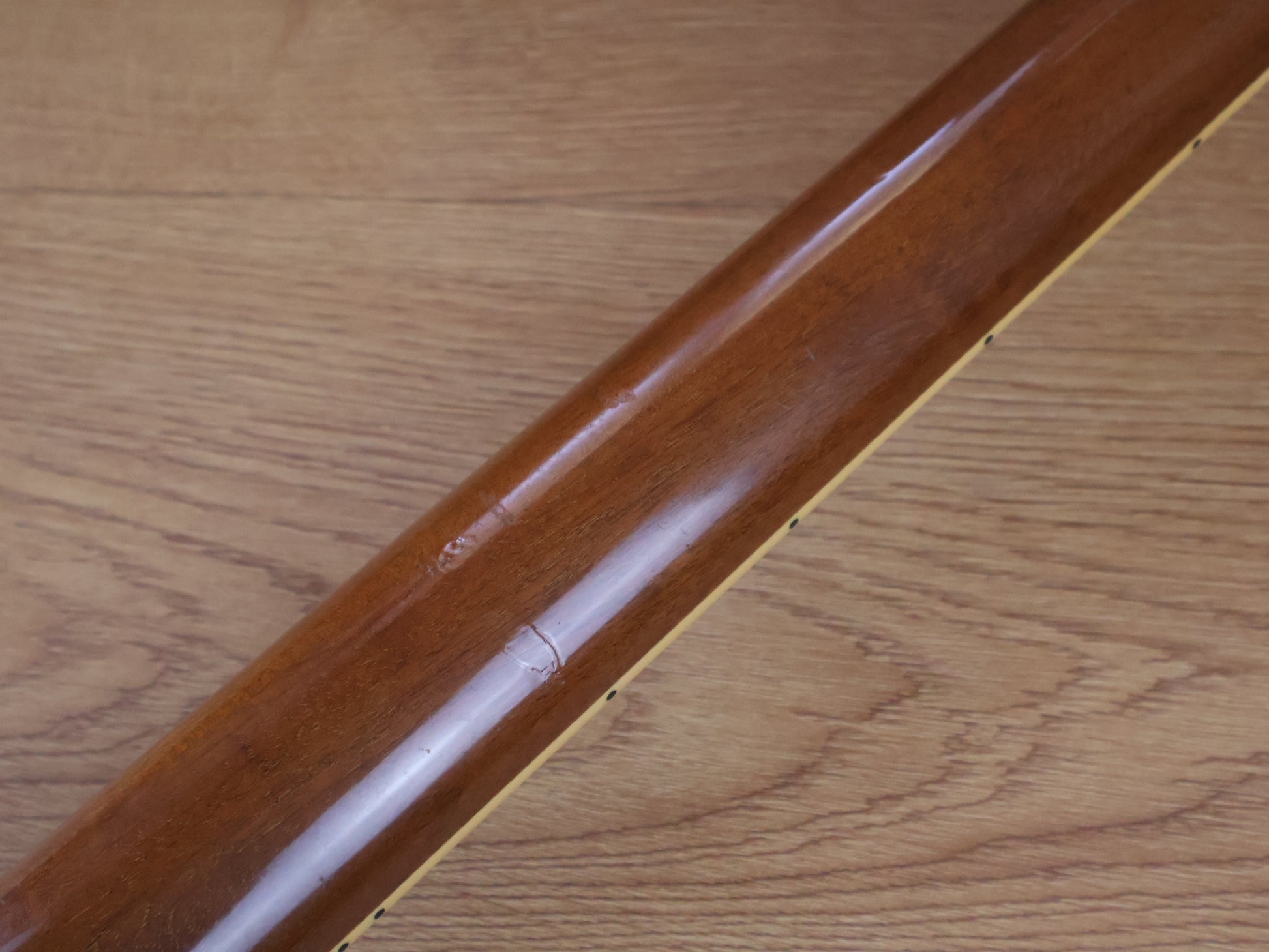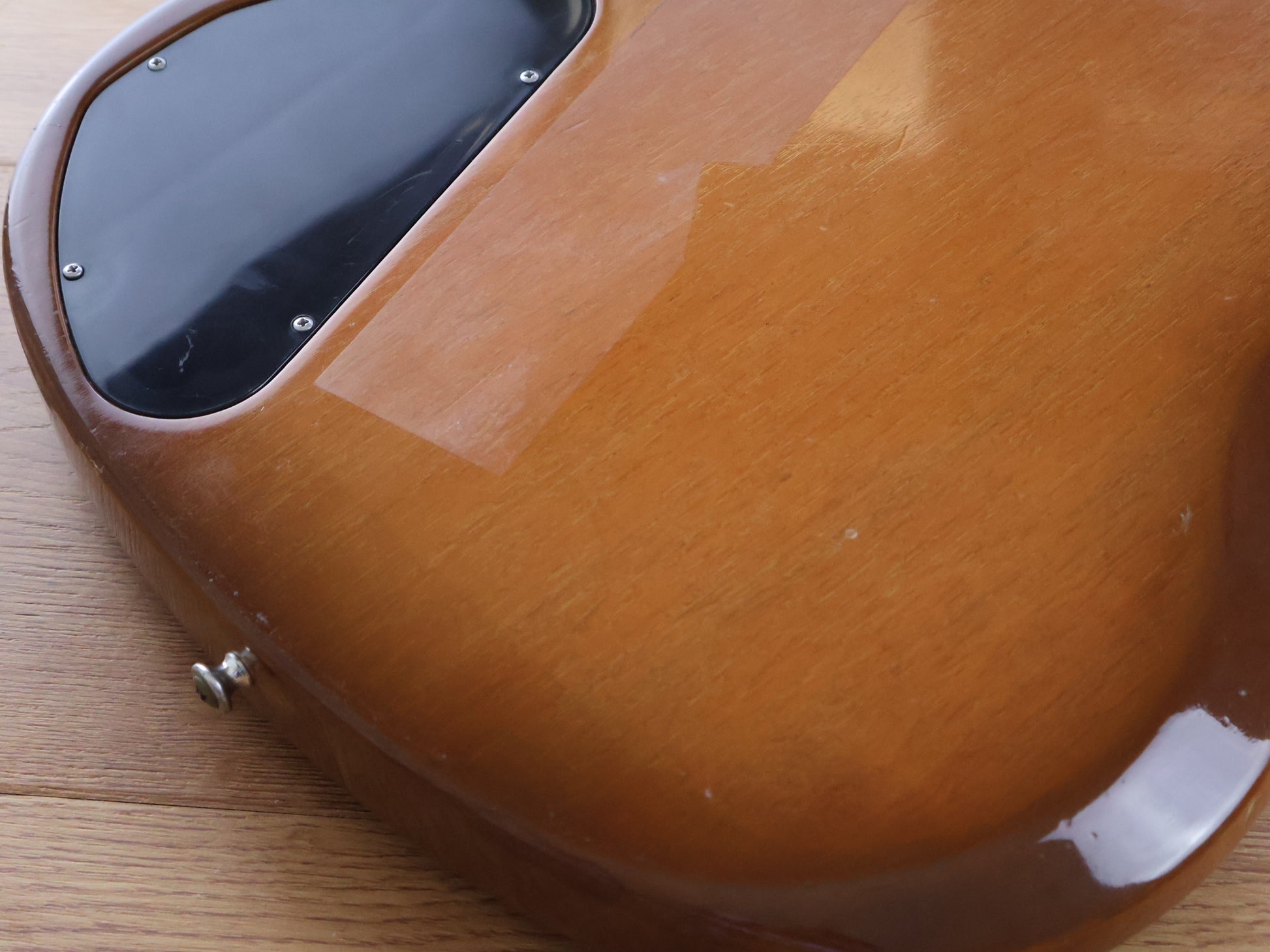 No breaks or repairs and appears all original except for the missing truss rod cover, there's some sticker residue and buckle rash on the back of the body but the front is nice and clean. The frets have some pitting but are shiny with plenty of life left and the neck is straight with a fully functional truss.