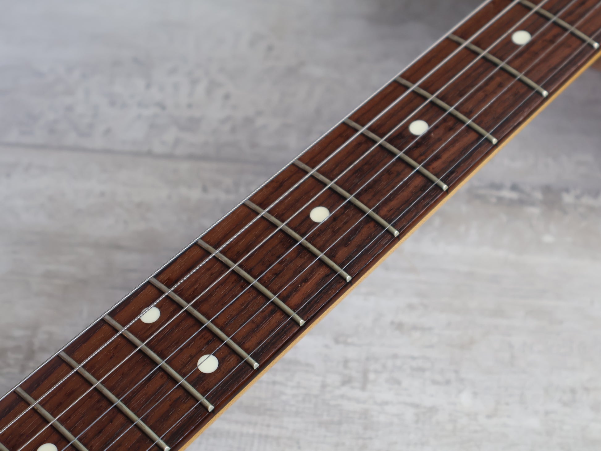 Good used condition with light signs of wear and tear as pictured but no breaks or repairs. The neck is straight and the truss adjusts well, the frets have plenty of life and are shiny and smooth with some light pitting.