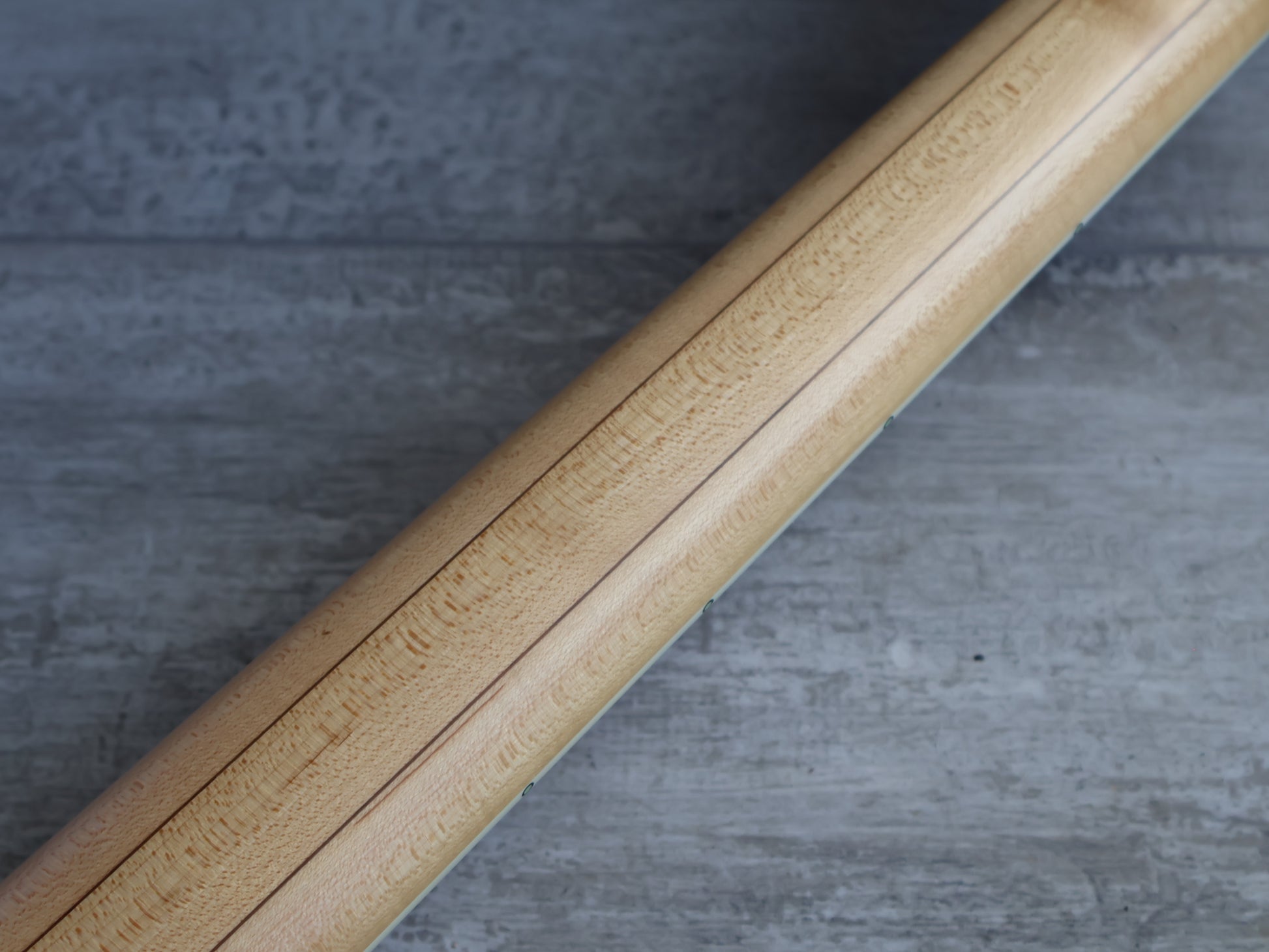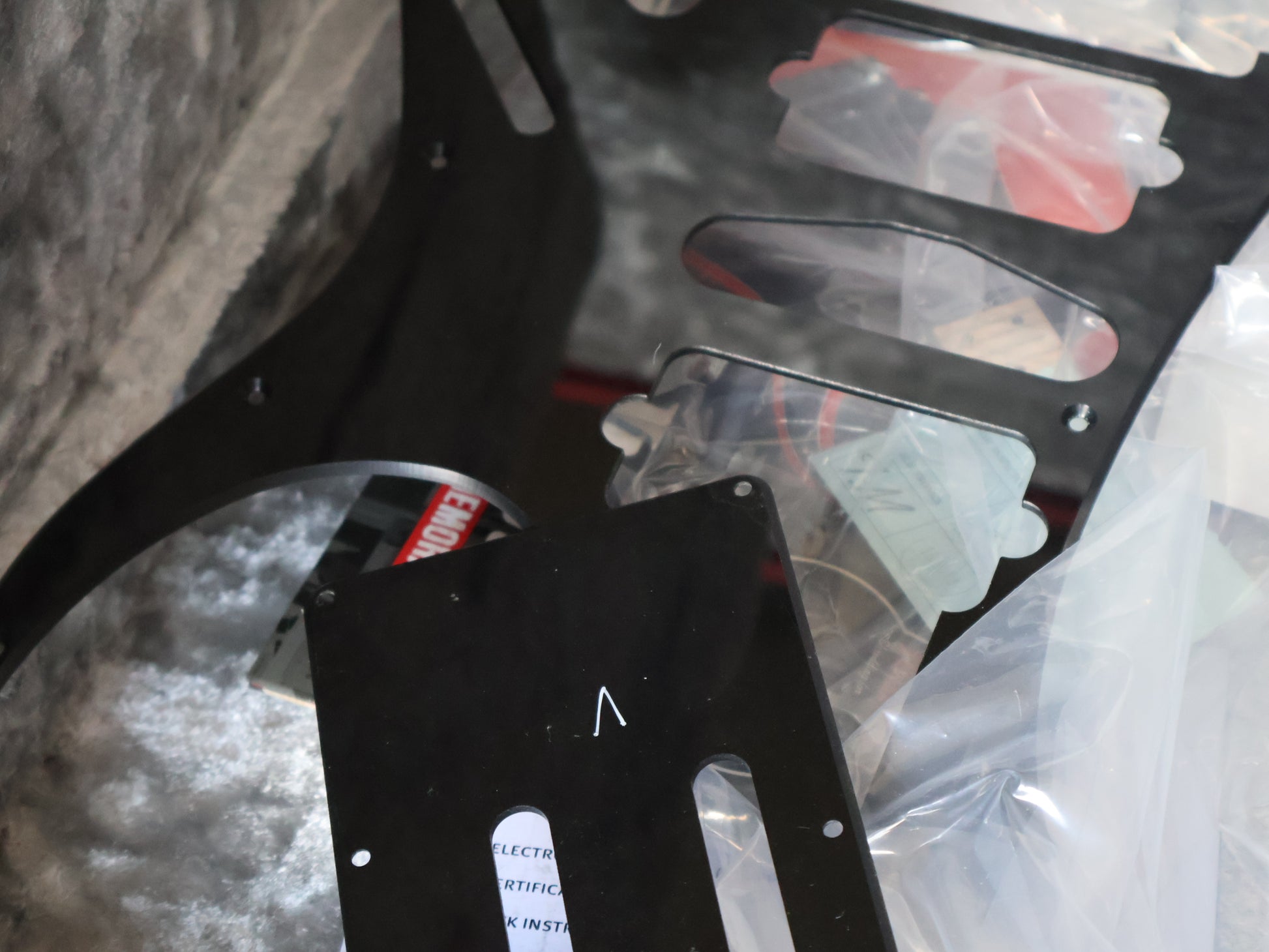 This model comes fitted with a transparent pickguard installed. An alternate black pickguard is included in the matching custom Ruby Red leather case.