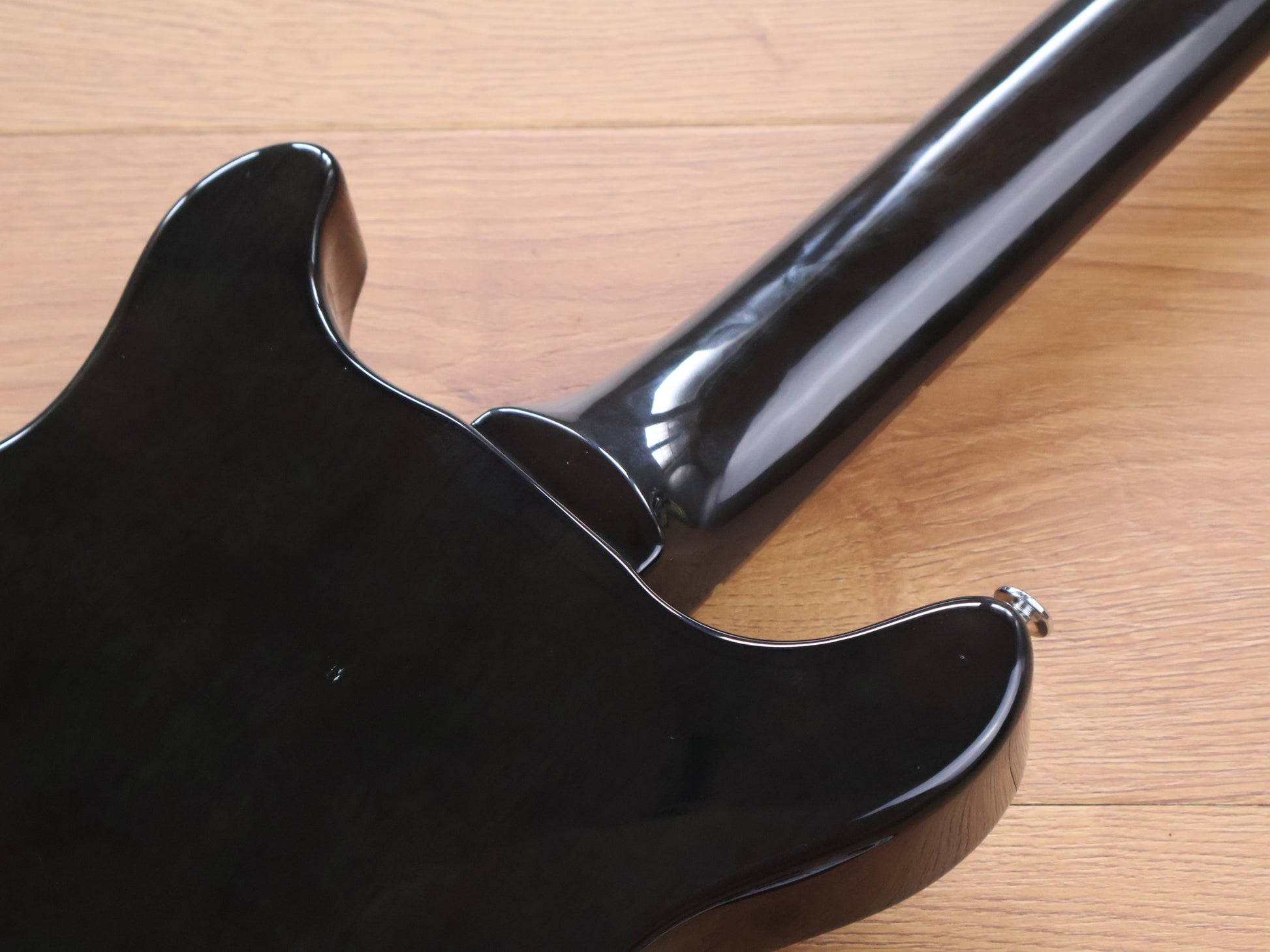 The Elite Custom features a thin mahogany body with pearloid top, and a 22-fret, 24" scale, set-in slim profile mahogany neck with rosewood fingerboard and piano key inlay. Includes a TonePros tune-o-matic bridge with stopbar, Daisy Rock High Output Humbuckers, master volume, master tone-tap and 3-way selector. Equipped with D'Addario EXL 110 strings and Grover tuners. Available in Groovy Swirl and Blue Kaleidoscope finishes.