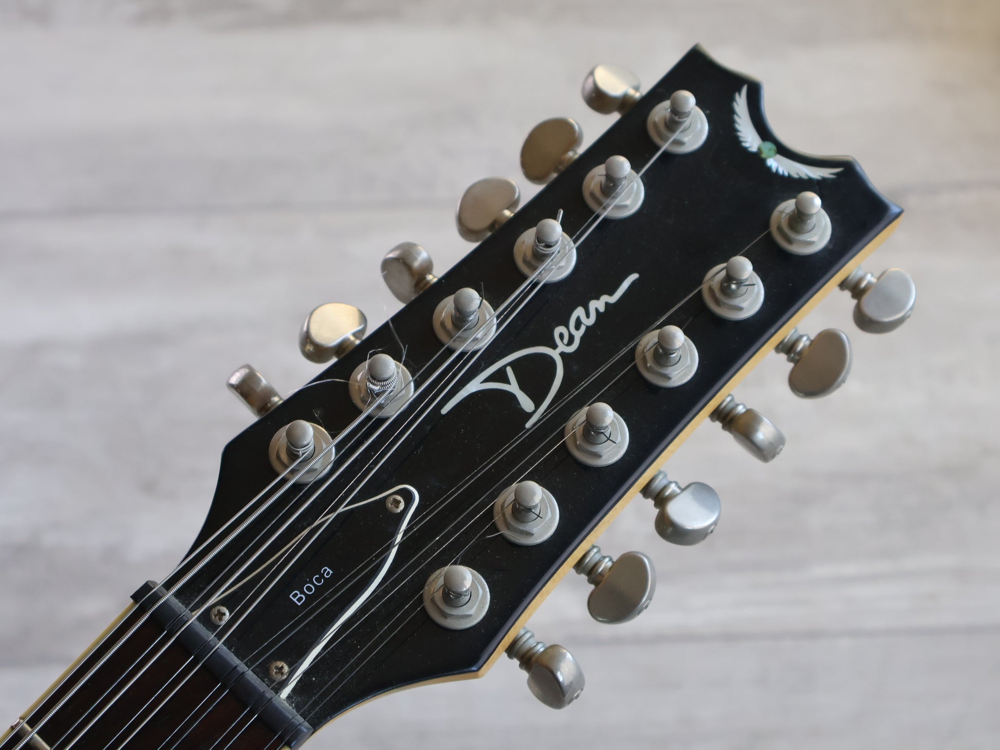 The Dean Boca 12-String Electric Guitar is great for that jangly classic rock sound. With the full twelve strings, a semi-hollow body with arched top, dual humbuckers, Grover tuners, adjustable bridge with stop bar tailpiece, and rosewood fretboard with dot markers. A sweet-playing axe that gets that Roger McGuinn sound to perfection.