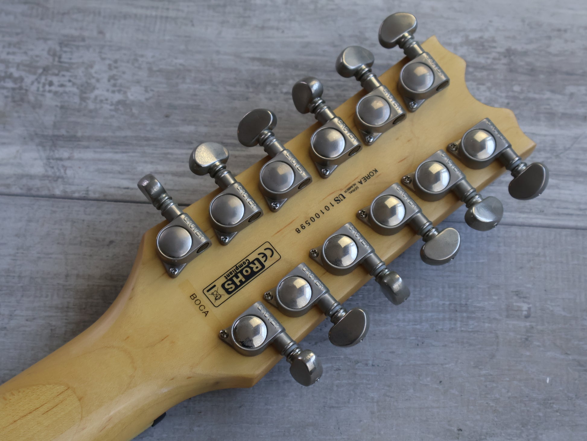 Traded in at our Gladesville store, a wild 12-string from Dean that the previous owner had a Les Trem installed on six of the strings so you can have some beautiful dissonance and vibrato. Good used condition as pictured, could use some new strings but we'll leave that up to you.