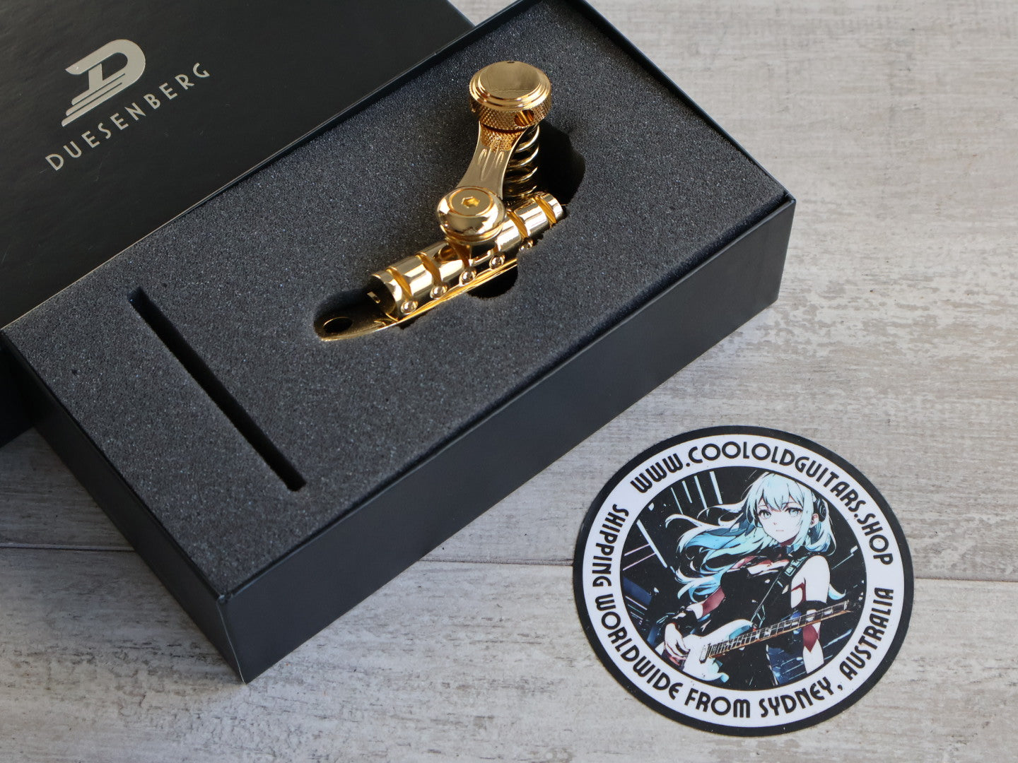 The Duesenberg Les Trem is a compact and simple to install tremolo system for guitars featuring a tune-o-matic bridge and stop-tailpiece.