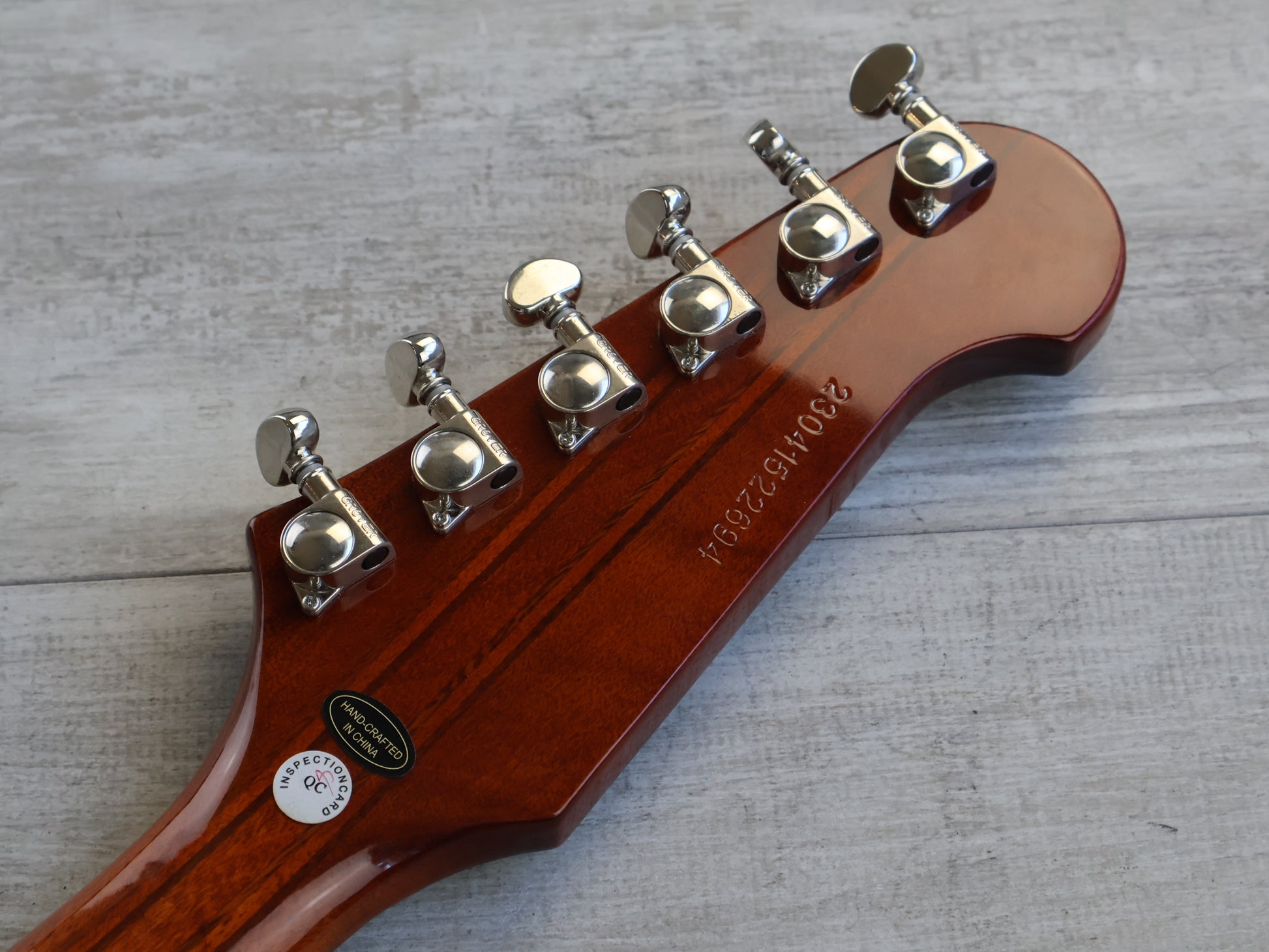 A SlimTaper™ neck with a bound, Indian laurel fingerboard and acrylic trapezoid fingerboard inlays offers fast and effortless playability. The newly refreshed Firebird is outfitted with a set of ProBucker™ FB720 pickups to recapture the scorching output and searing tones of the original voice for which the Firebird is known, and Grover® 18:1 ratio mini tuners.