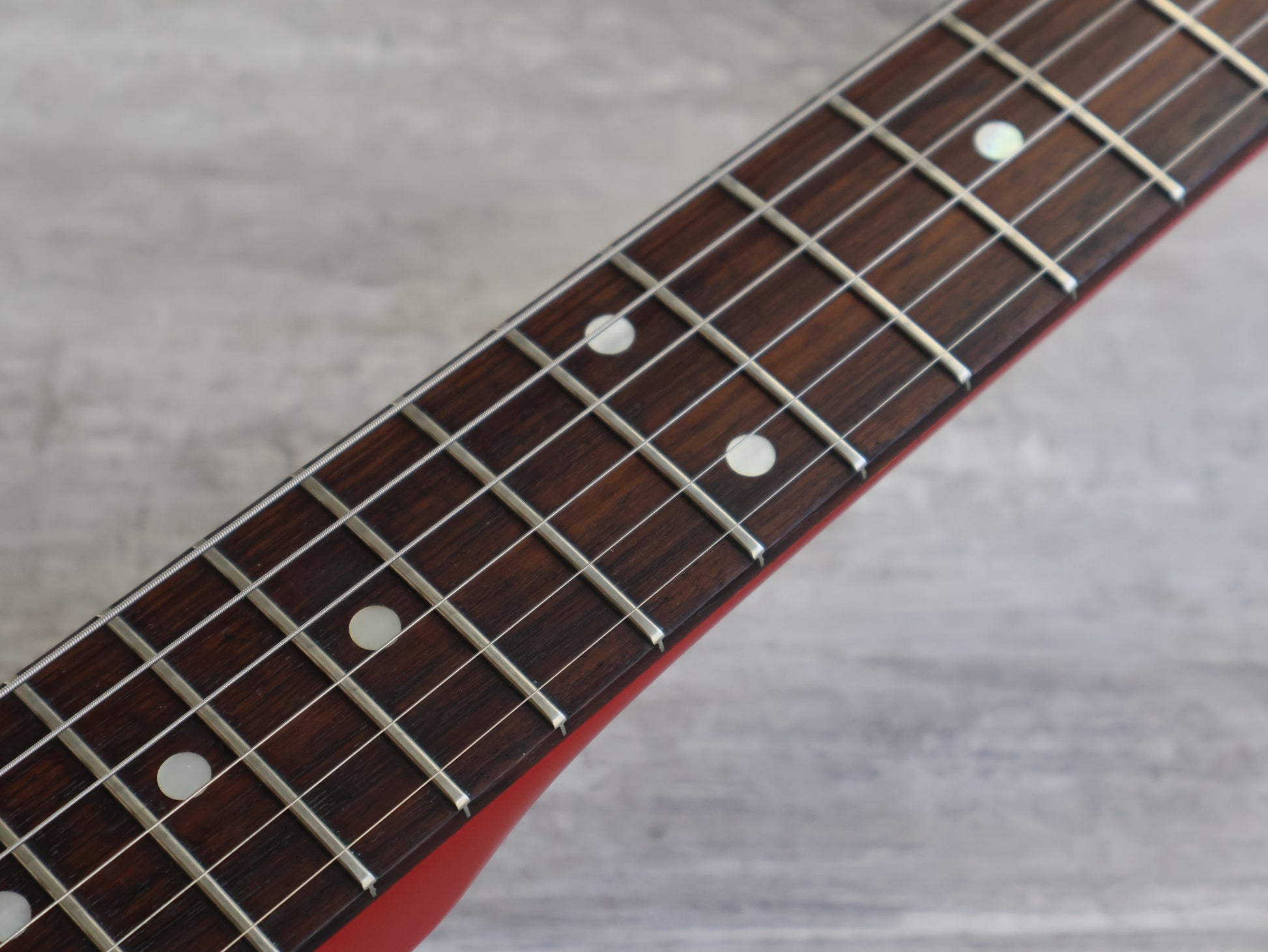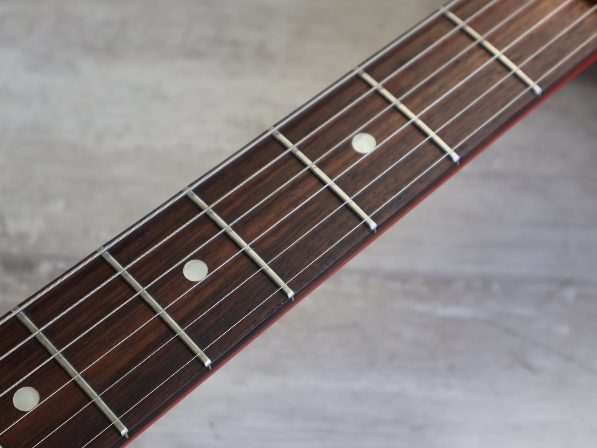The finish on the body appears to be original, the neck appears to have been refinished at some point. Restrung and given a basic service prior to listing, the frets have plenty of life and the truss works as it should.