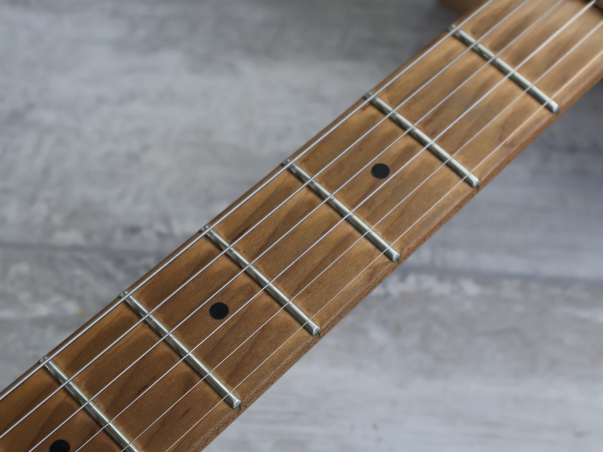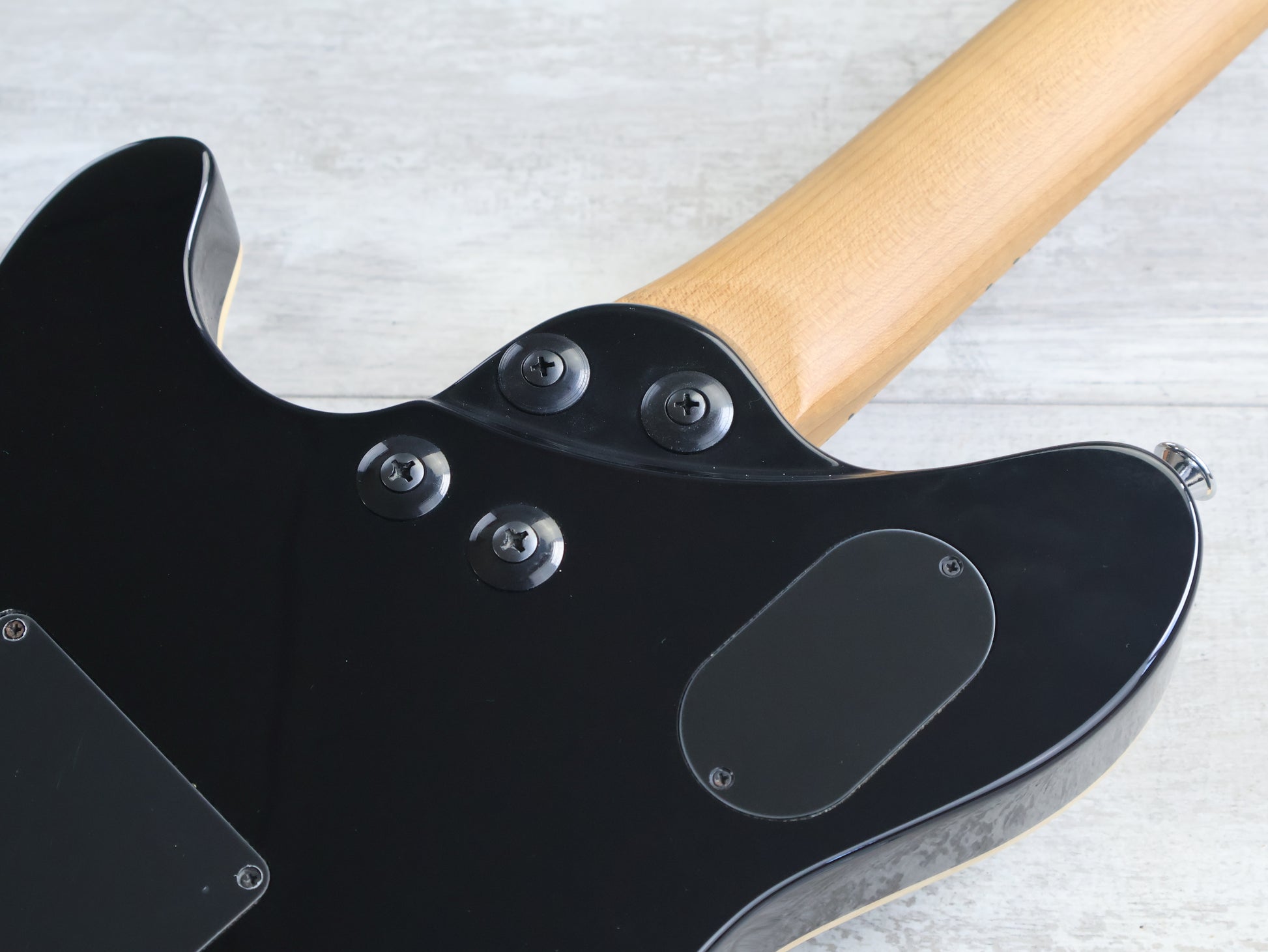 With specs favoured by the man himself, the EVH Wolfgang WG Special QM, finished in Charcoal Burst, is sure to impress. A one-piece quartersawn bolt-on neck, with graphite reinforcement rods, combined with an arched Quilt Maple-topped basswood body gives you tone to spare, while you shred for days in comfort. The neck is carved and rolled to Van Halen's exact specifications and finished in a hand-rubbed urethane. A 22 jumbo-fret 12"-16" compound radius fingerboard maximises playability. Two flagship model custom-designed black direct mounted EVH Wolfgang Alnico II humbuckers, a Floyd Rose Locking trem and R2 locking nut give you dives dripping with tone and sustain. Plus the EVH D-Tuna lets you switch between drop and standard tuning with the flick of a finger. The volume knob with treble bleed circuit has a 500K EVH Bourns low friction pot for smooth swells and a tone control knob with a 250K Bourns high friction tone pot that prevents accidental tone shifting.