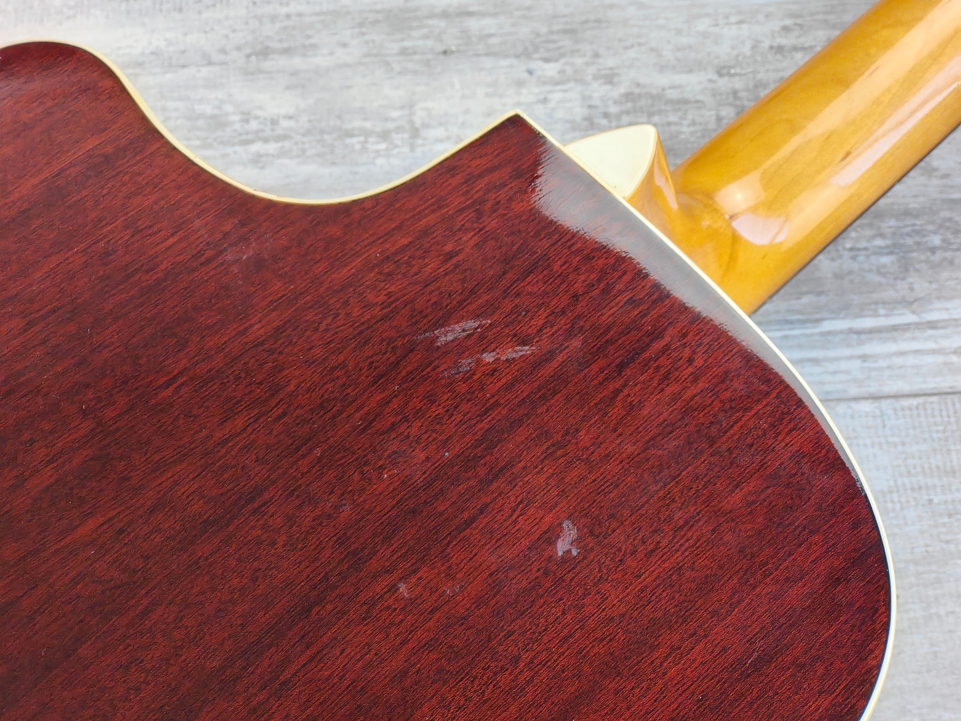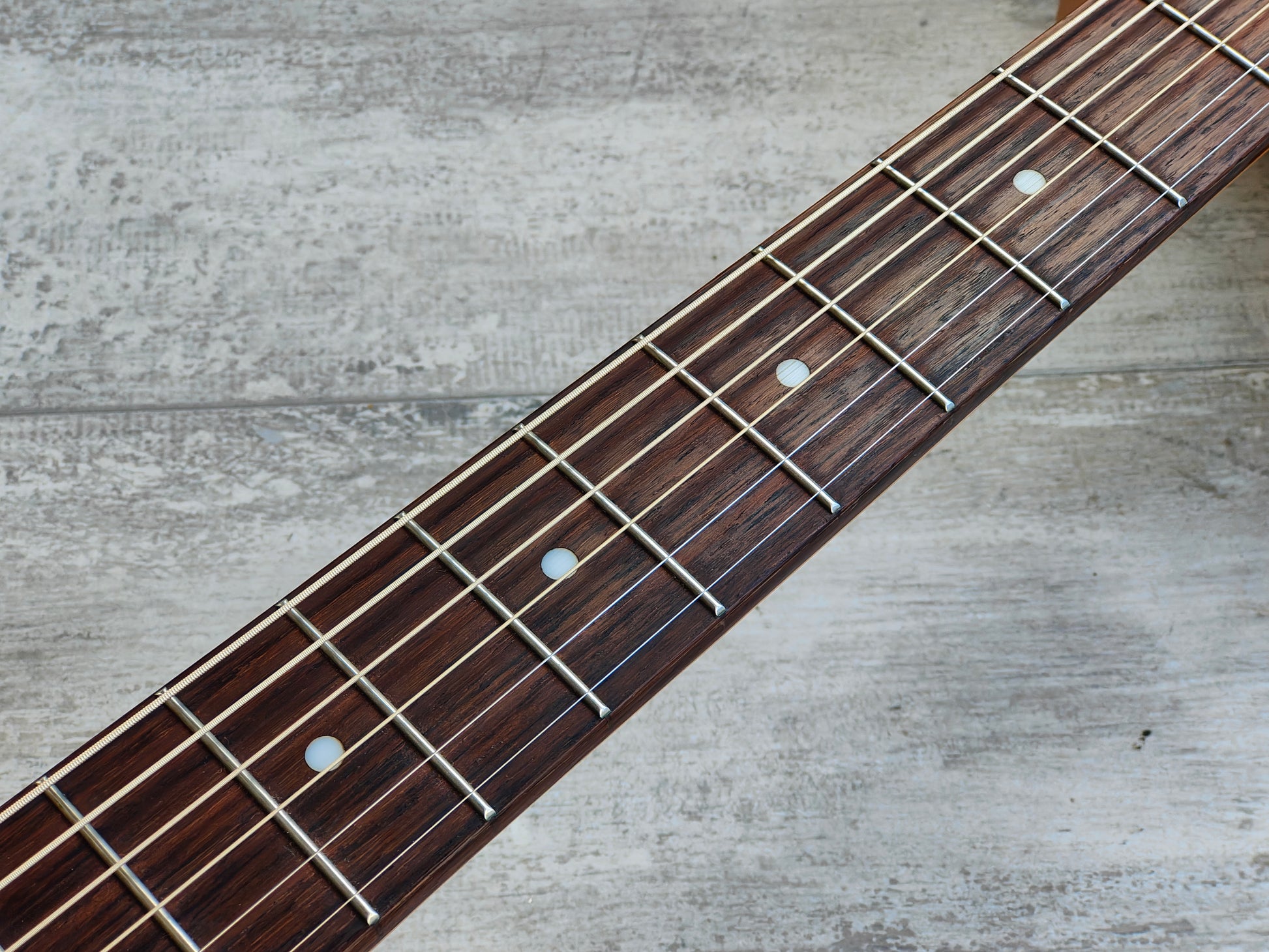 The Maple neck with “C” profile and matching headstock 20-fret rosewood fingerboard with bone nut Rosewood bridge with compensated bone saddle